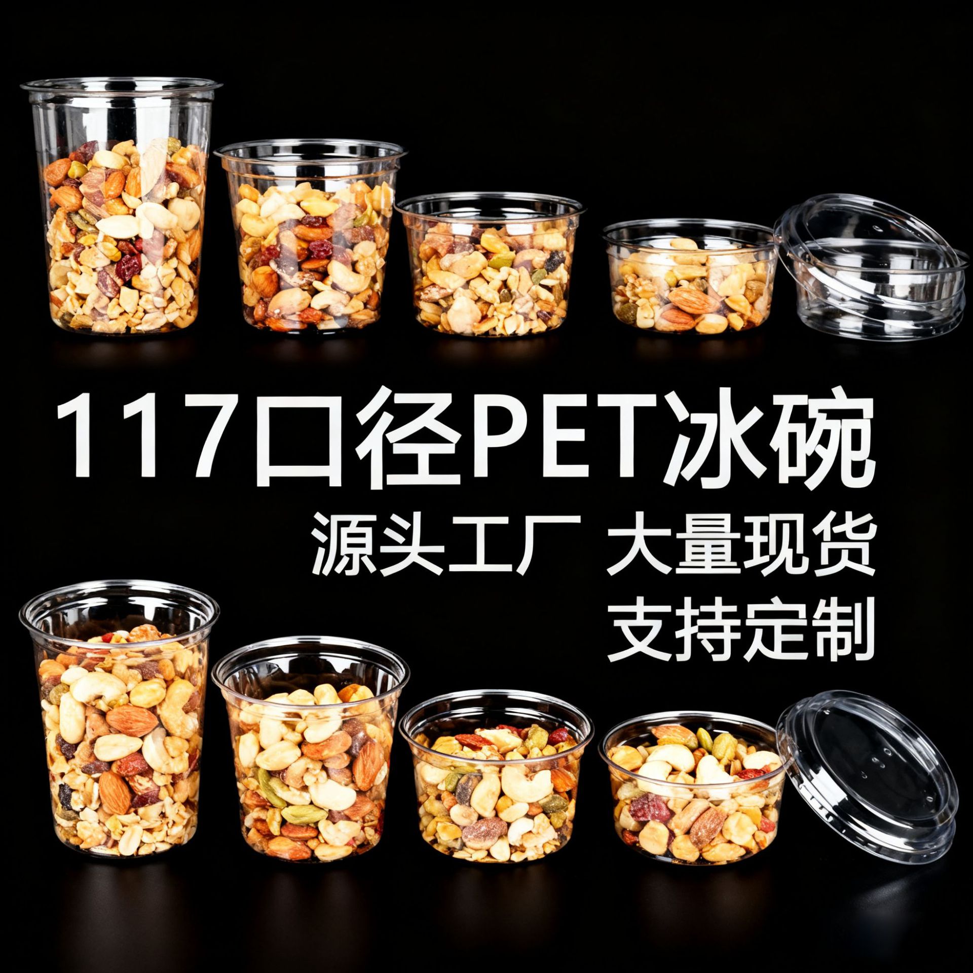117口径一次性pet碗冰粉果切碗坚果桶大容量透明打包盒酸奶水果捞