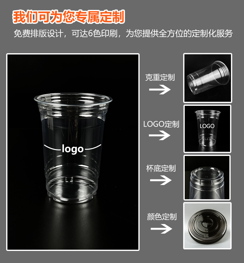 PETカラーミルクティーカップ冷飲カップ使い捨てプラスチックカップの多様な口径カップタイプの容量ロゴは決まっている. 制