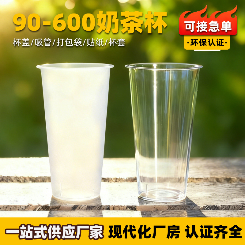 奶茶杯一次性90口径600ml透明磨砂水果茶杯子一次性注塑奶茶杯