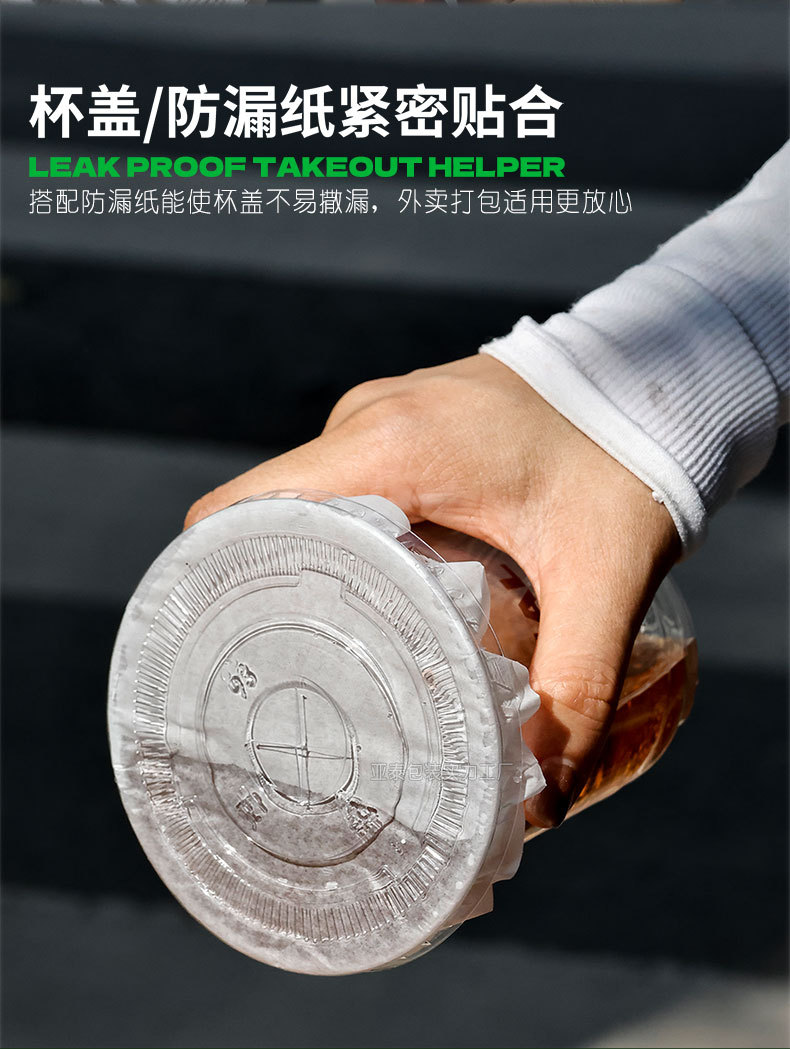 90口径紙コップカバー使い捨てpet透明紙プラスチック漏れ防止カバー黒カップコーヒー分体厚さカバー