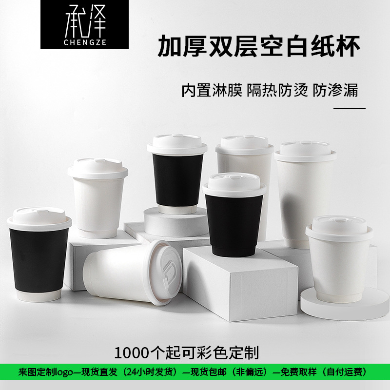 工場在庫卸売紙カップ蓋付き断熱火傷防止ミルクティーカップ使い捨て二層紙中空コーヒーカップ