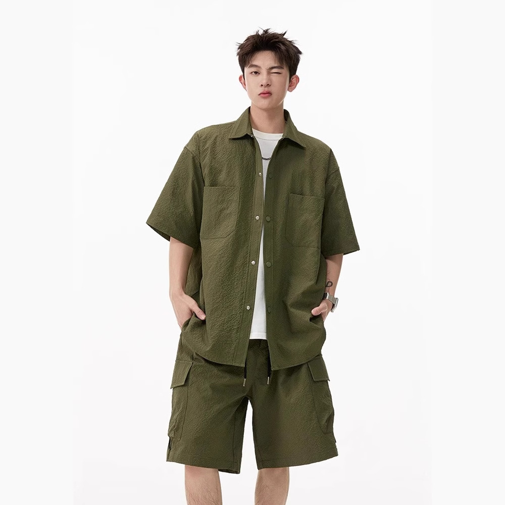 松弛感工装短袖衬衫套装男2025夏季宽松休闲衬衣两件套运动防晒衣