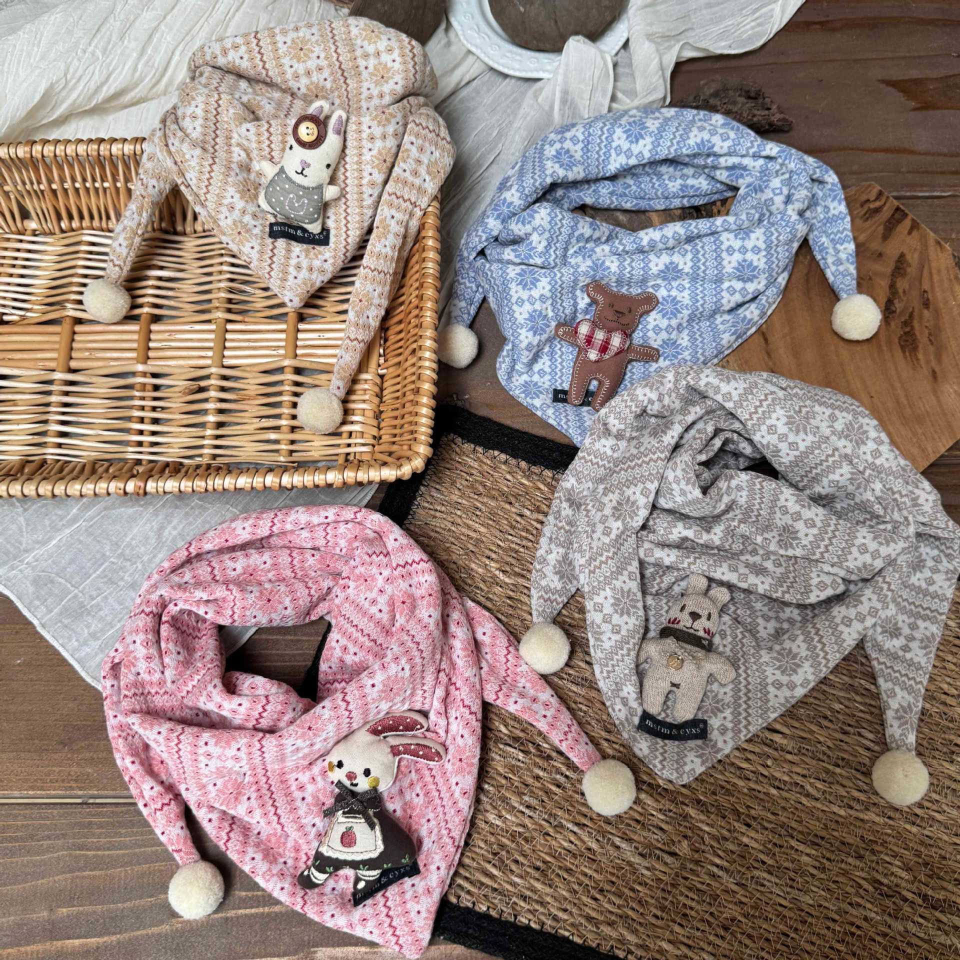 韓国版秋冬綿麻子供用マフラー男の子と女の子の漫画三角タオル赤ちゃんのよだれタオル保温赤ちゃんのマフラー