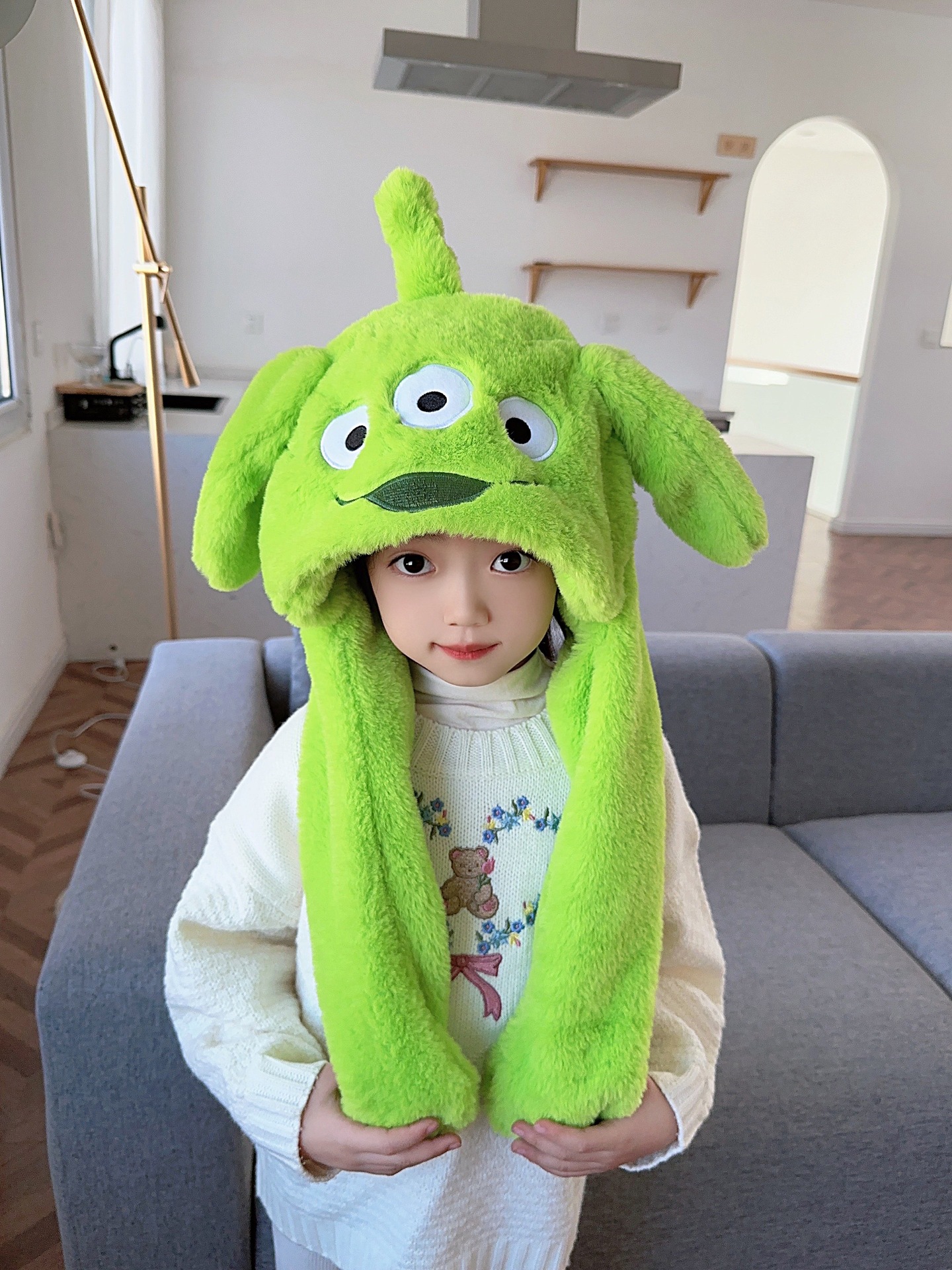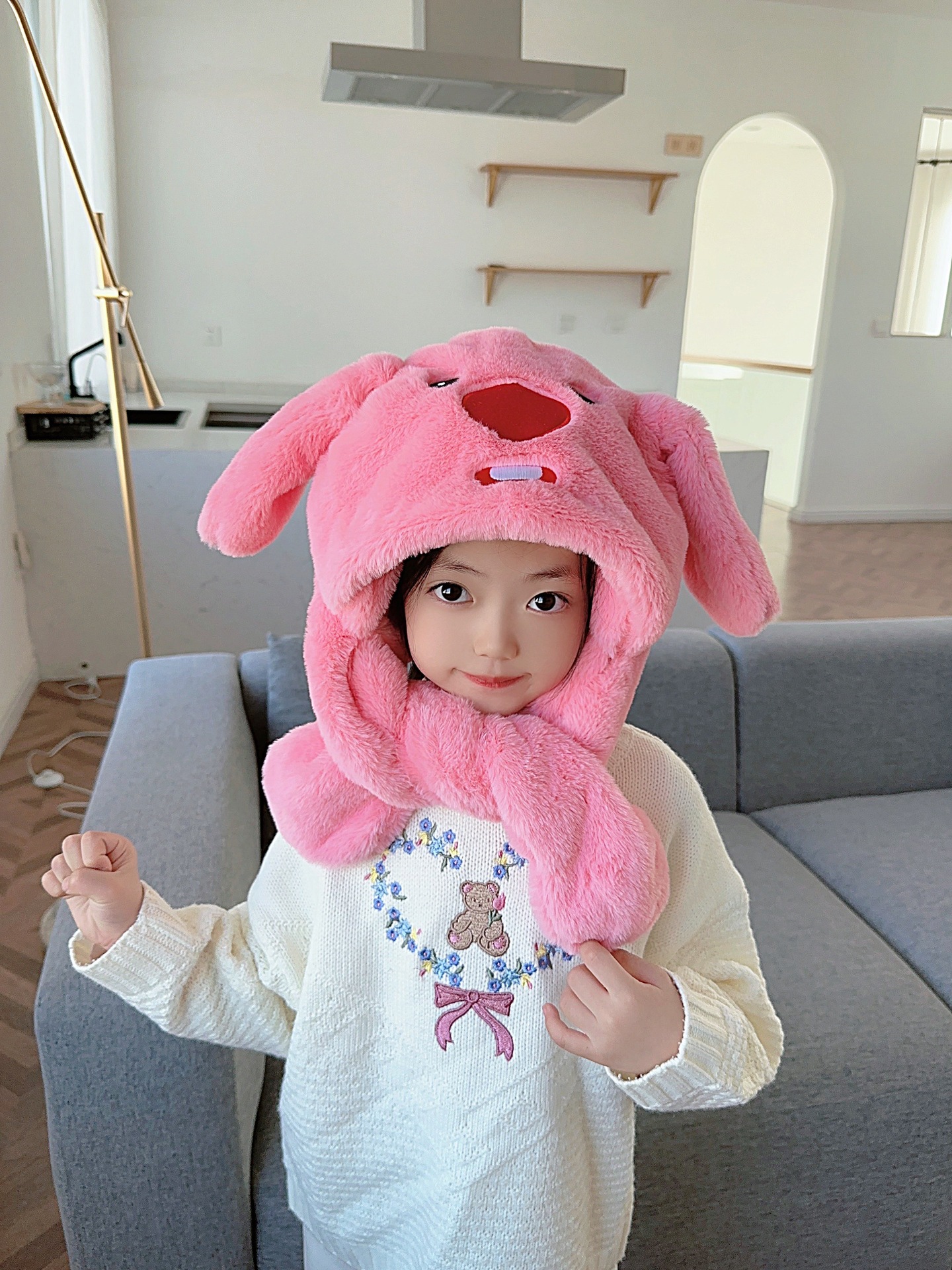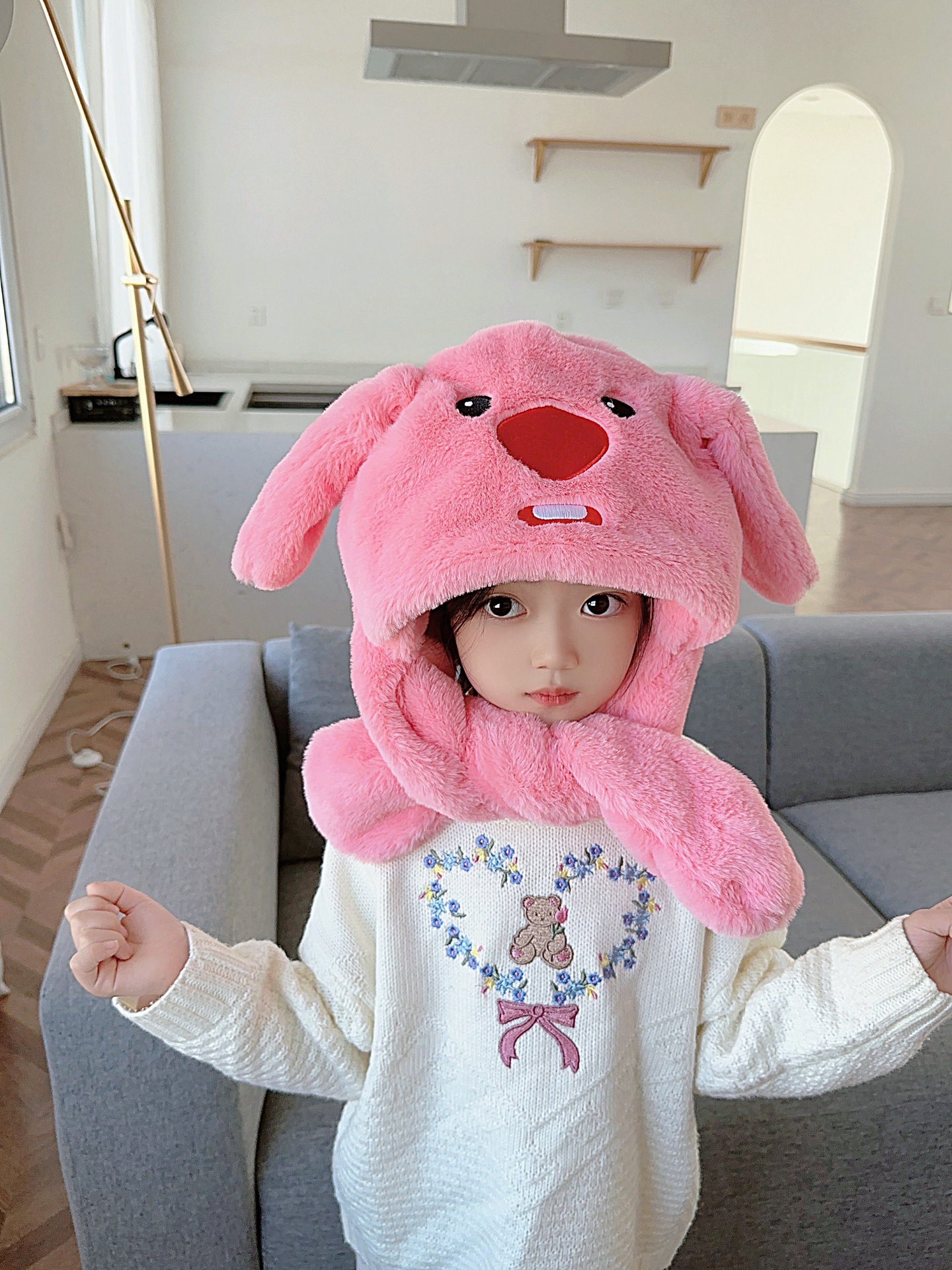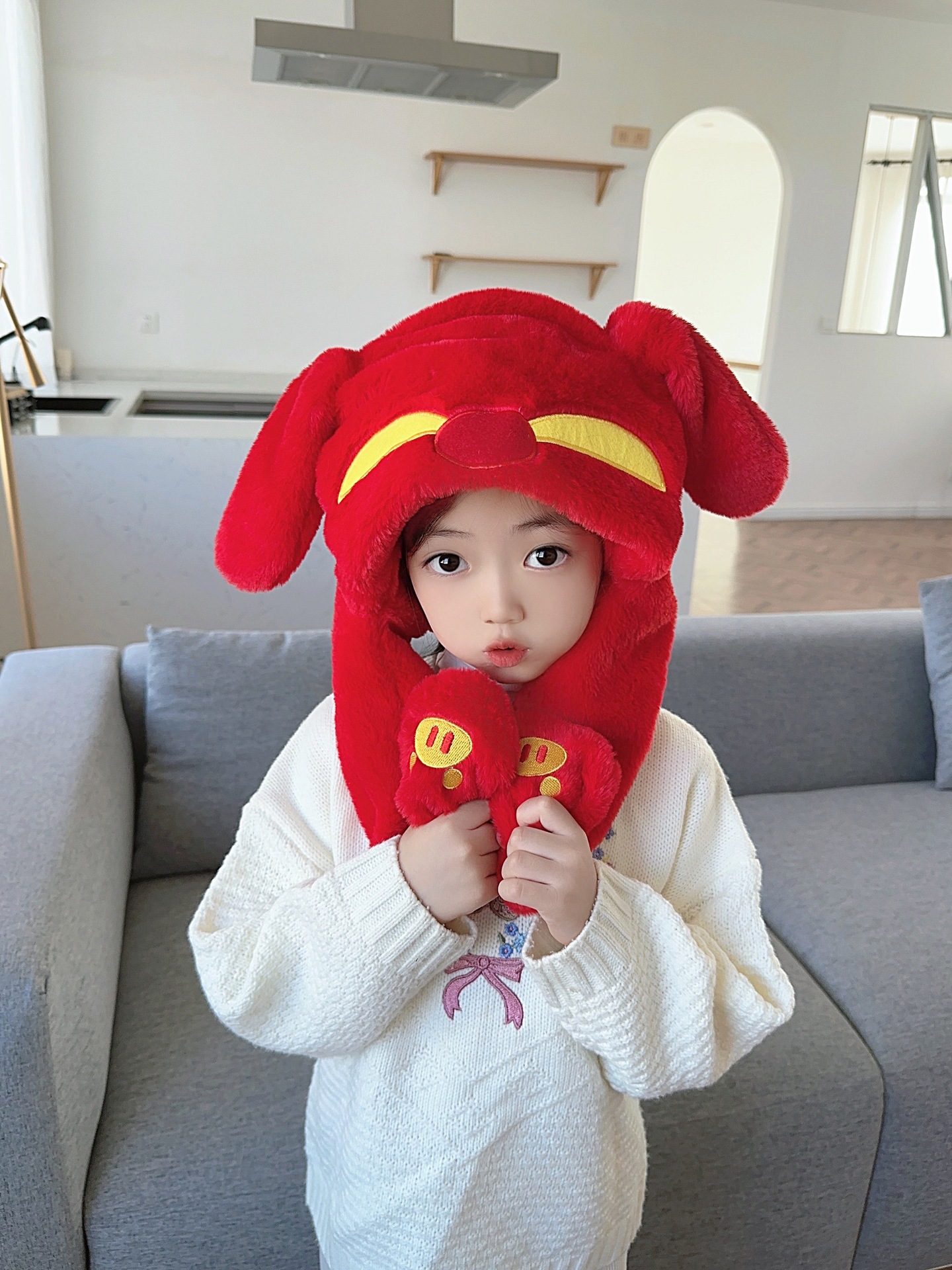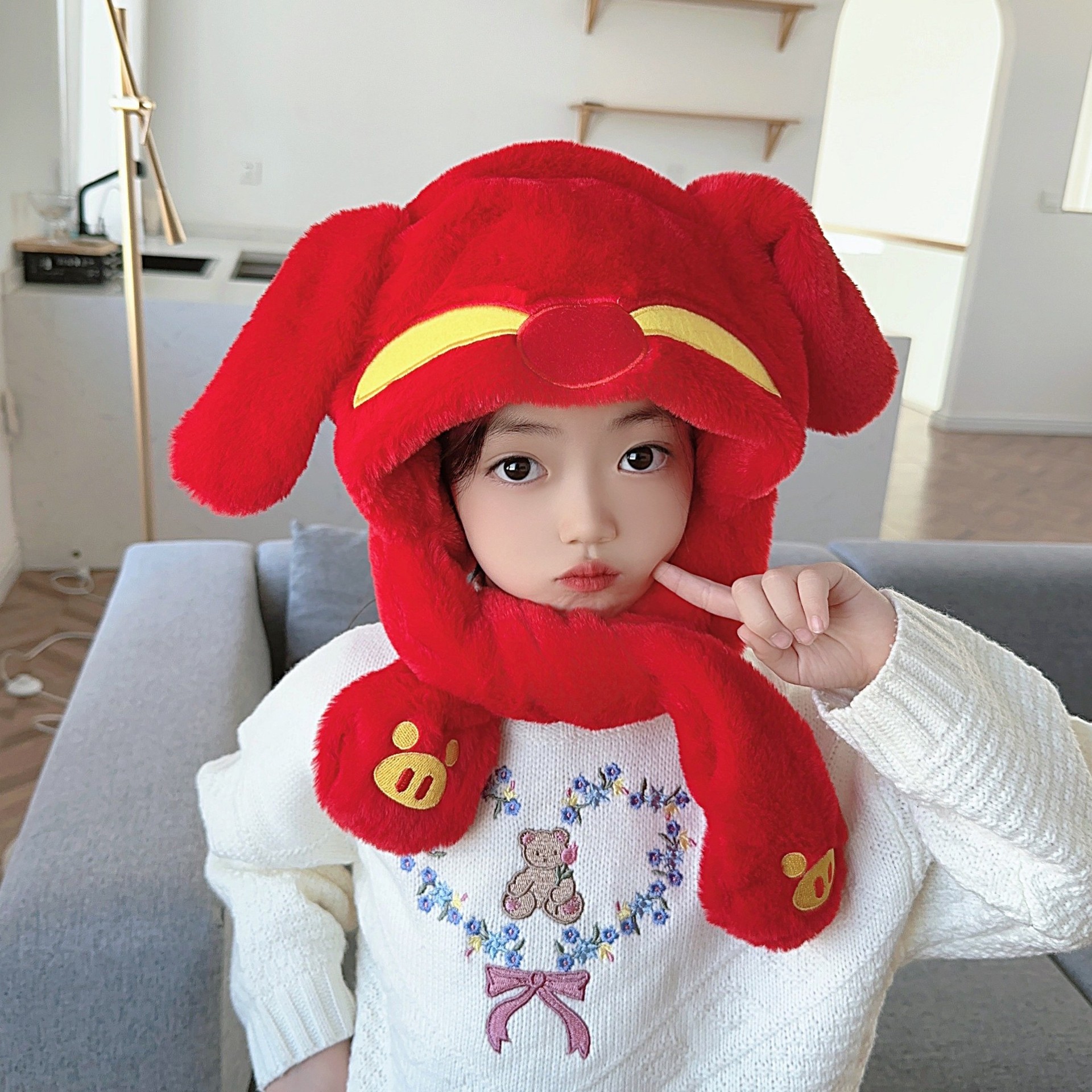 ピカバラ秋冬子供の女性の帽子のマフラーの2つのセットのかわいい漫画の震え音の同じタイプの動耳のスーツ