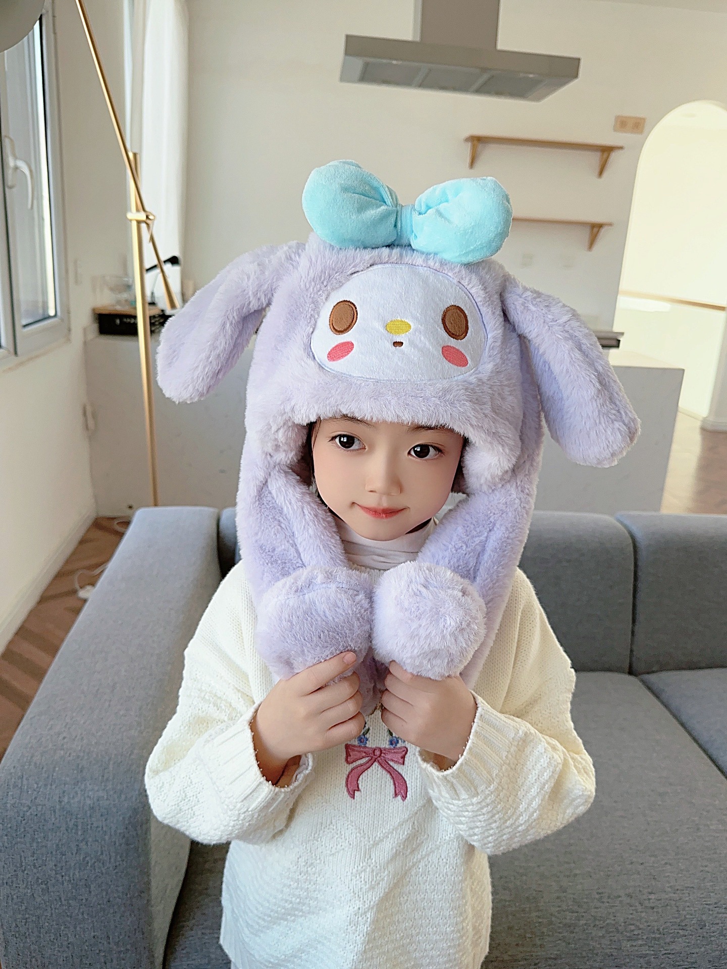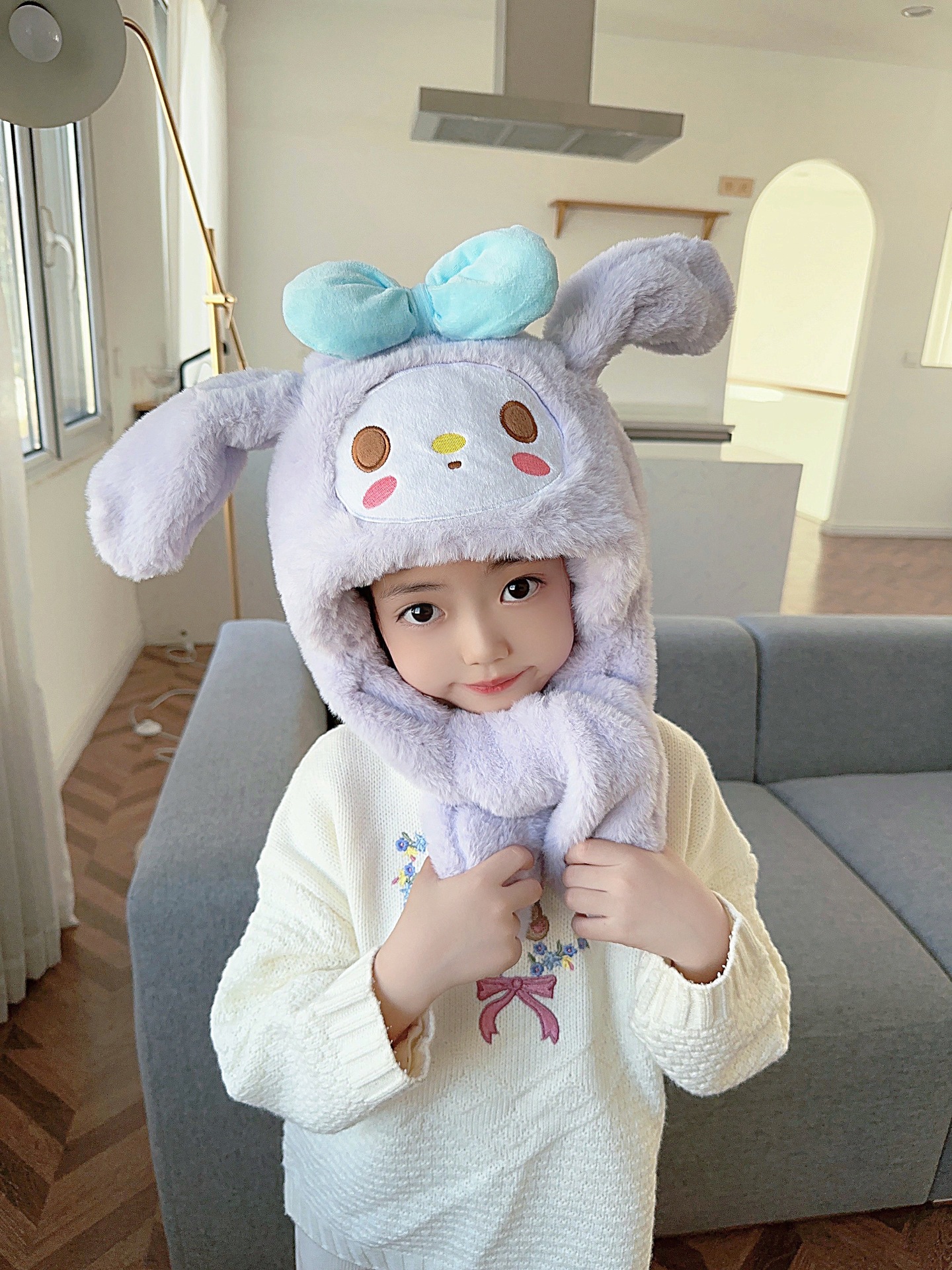 2025 新しい子供のスカーフ秋と冬ぬいぐるみ親子暖かくてかわいい肥厚漫画模造ウサギの毛皮のベビースカーフ