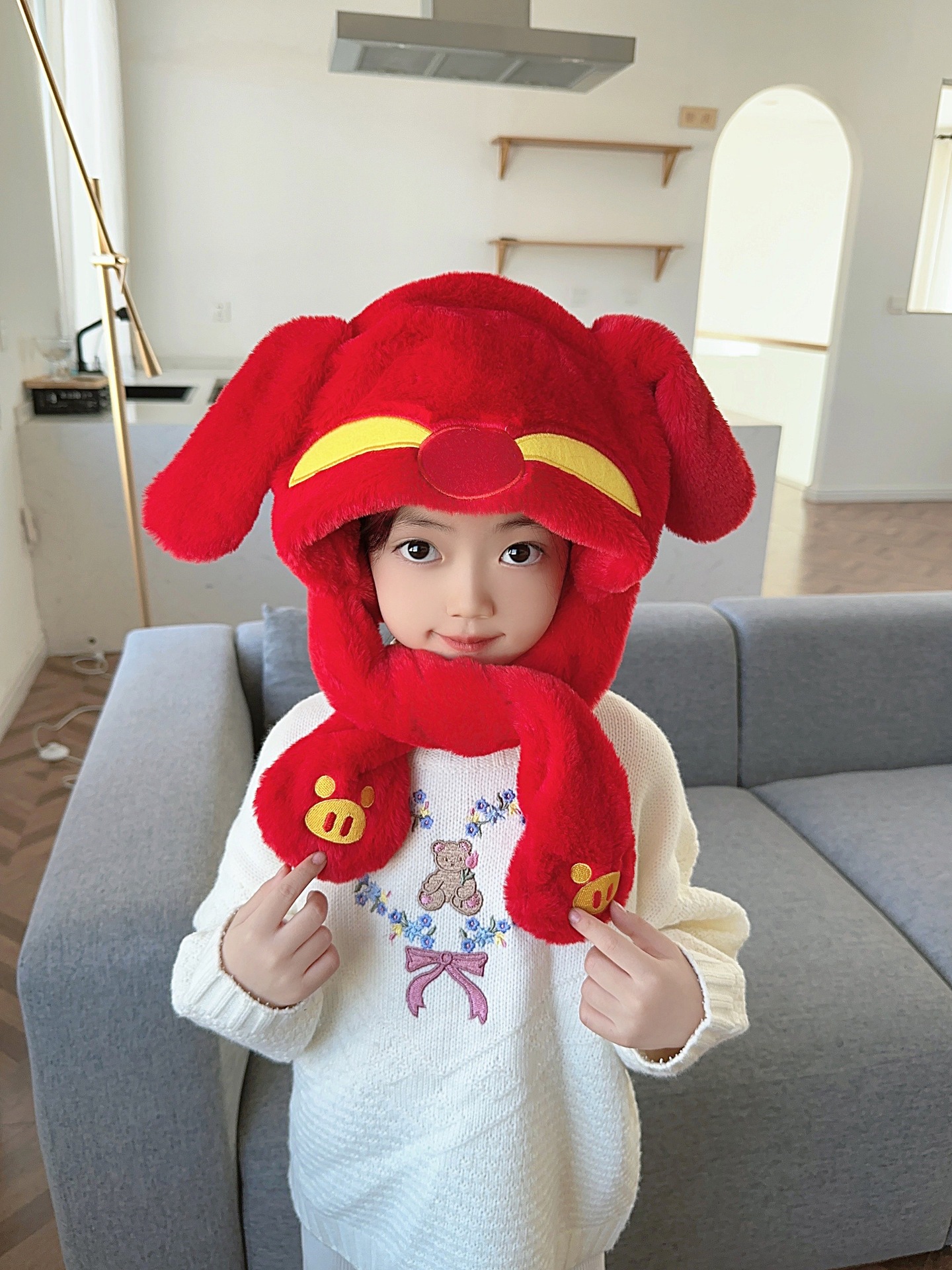 ネットの赤いウサギの首を囲む一体の帽子はかわいいです。