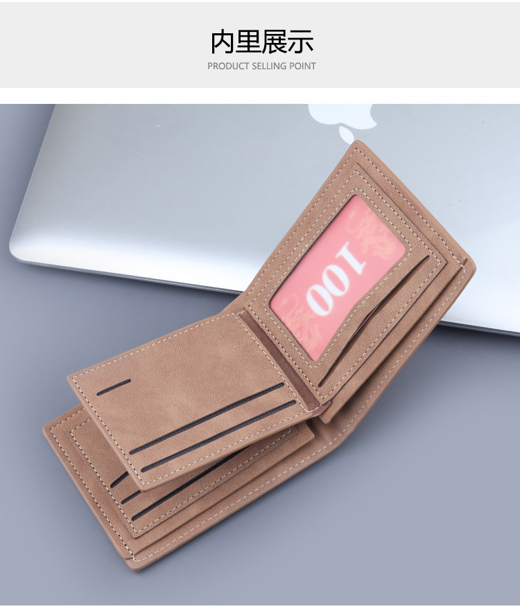 新品ショート財布メンズ二つ折りフロスト革クリップシンプル多カード位メンズ財布メンズ小銭入れ