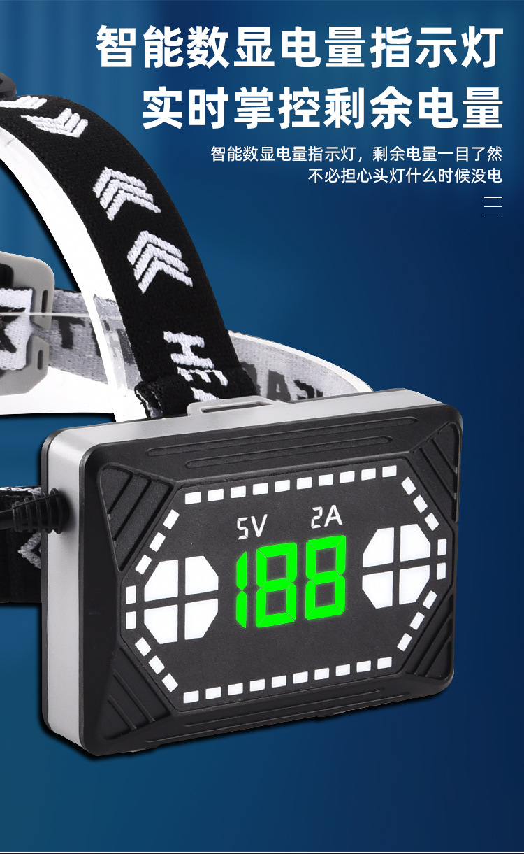 クロスボーダー超高輝度白色レーザー強力な光長距離誘導ヘッドライトデジタルディスプレイパワーバンク機能ズーム屋外ヘッドライト