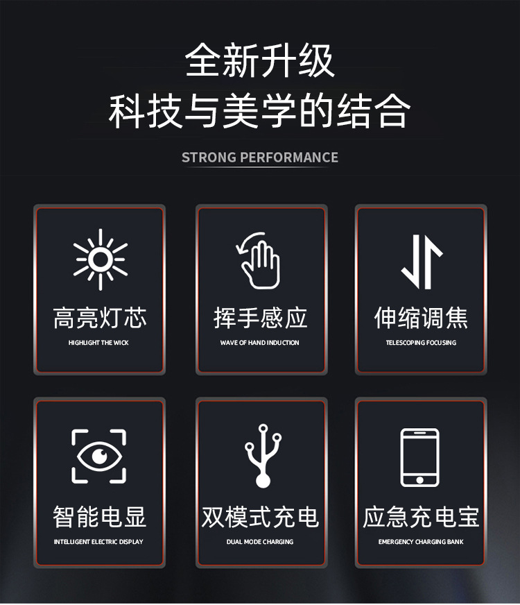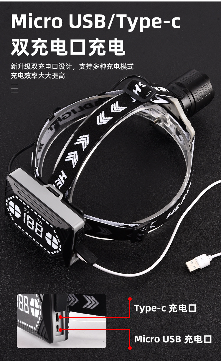 国境を越えた屋外の強い光充電ヘッドライト誘導帯デジタル表示ズームヘッドライトハイライトレーザー長航続LEDヘッドライト