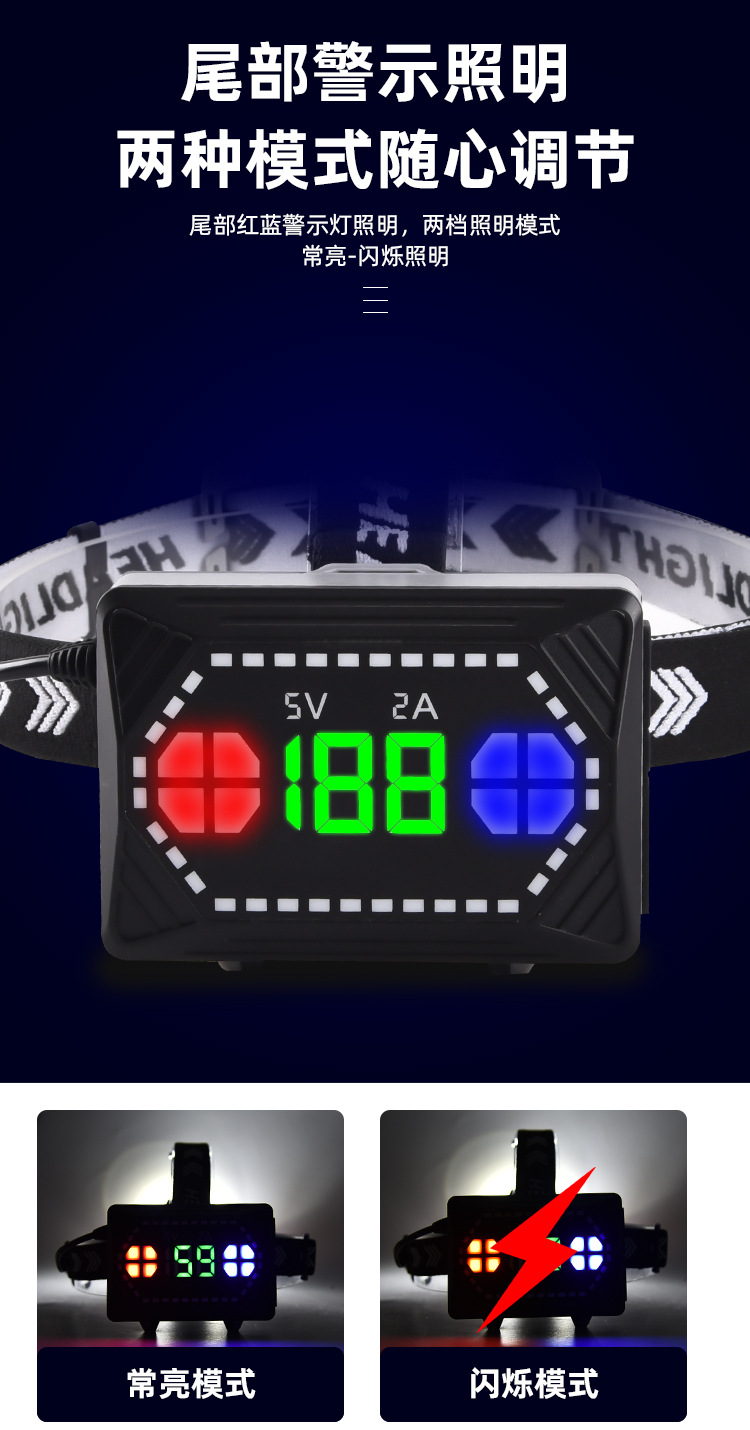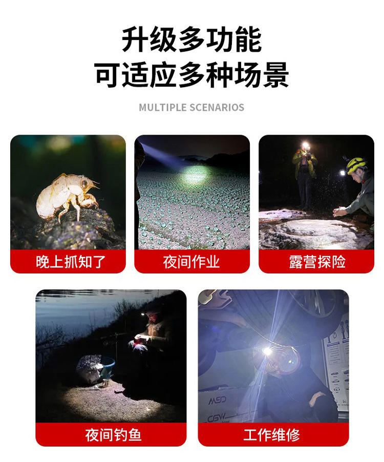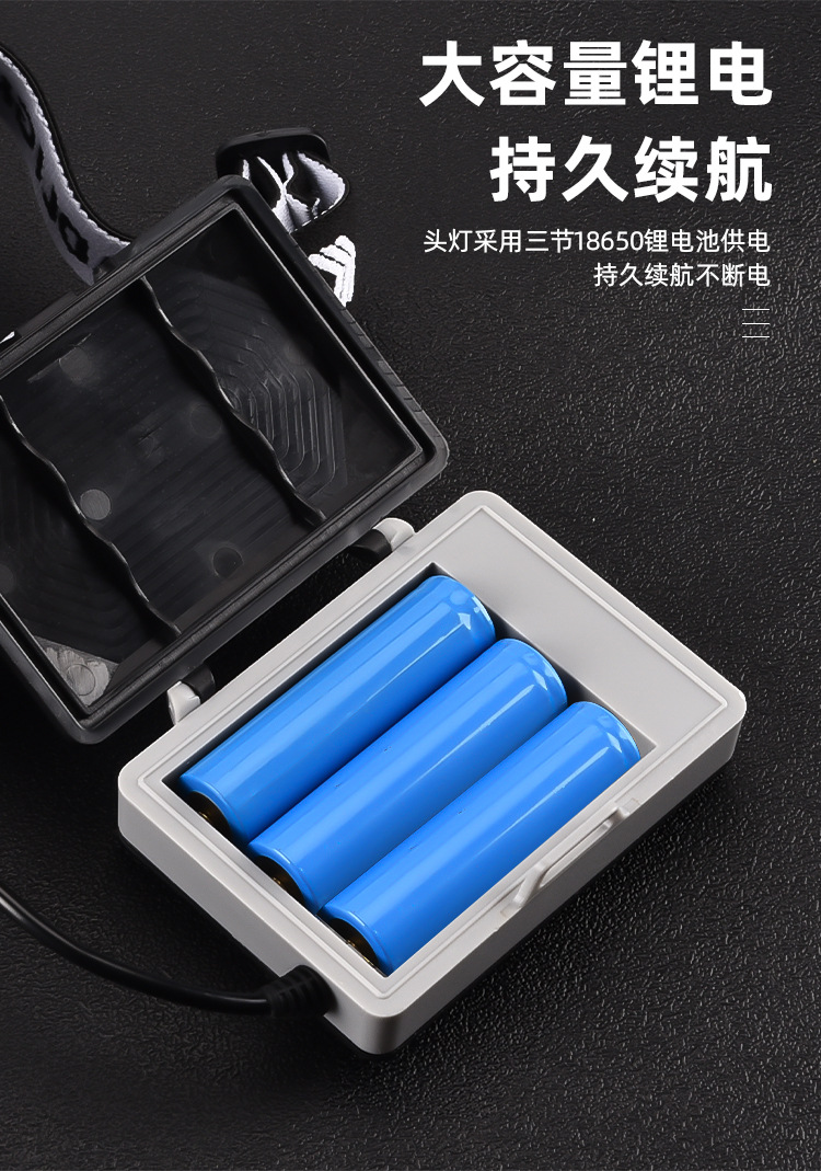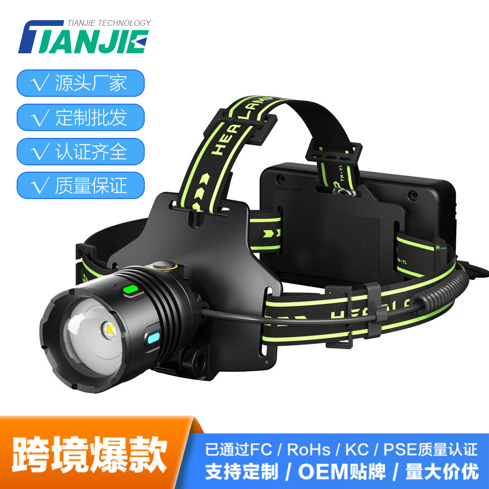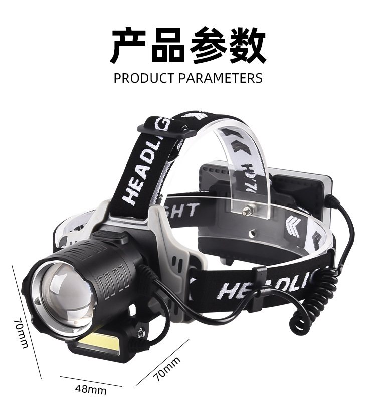 跨境伸缩变焦白激光+COB强光感应头灯 户外赶海夜钓LED充电头灯