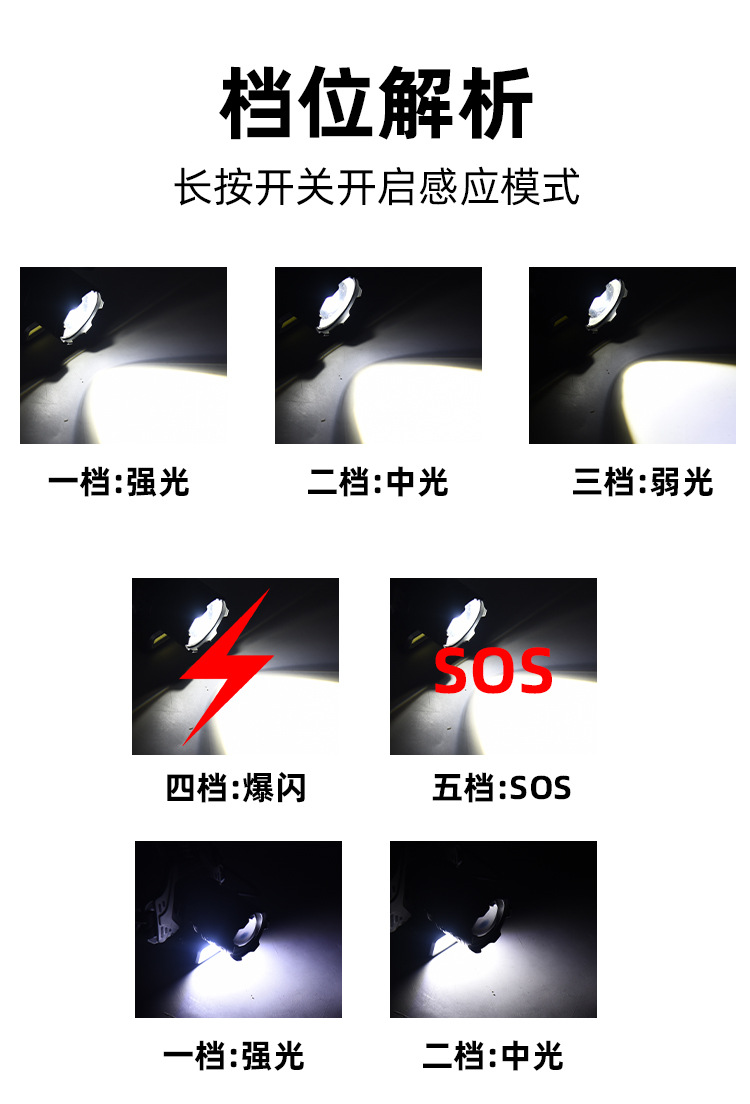 感応ヘッドランプcob强い光充电超明るいヘッドセット白いレーザー屋外懐中电灯黄色光钓り鉱山ライト