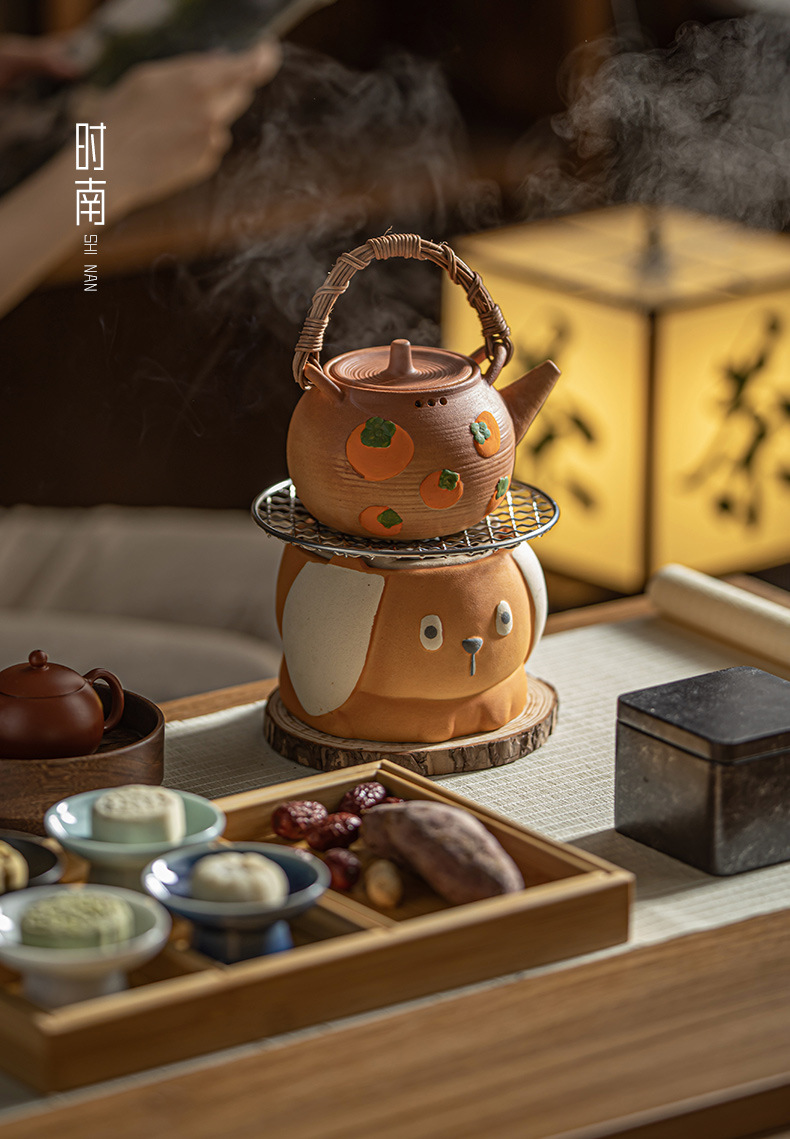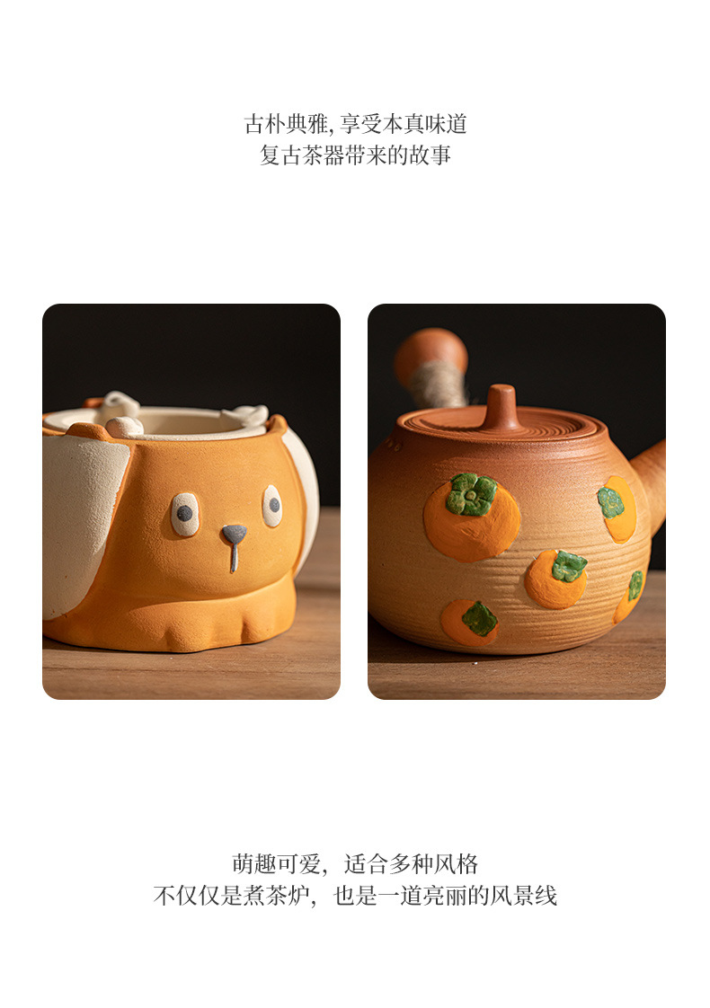 萌え犬陶土煮茶炉屋外明火煮ティーポット囲炉裏煮茶焼炉室内炭火炉家庭用セット