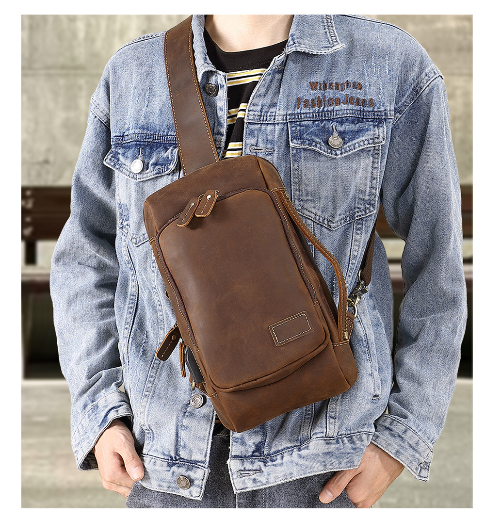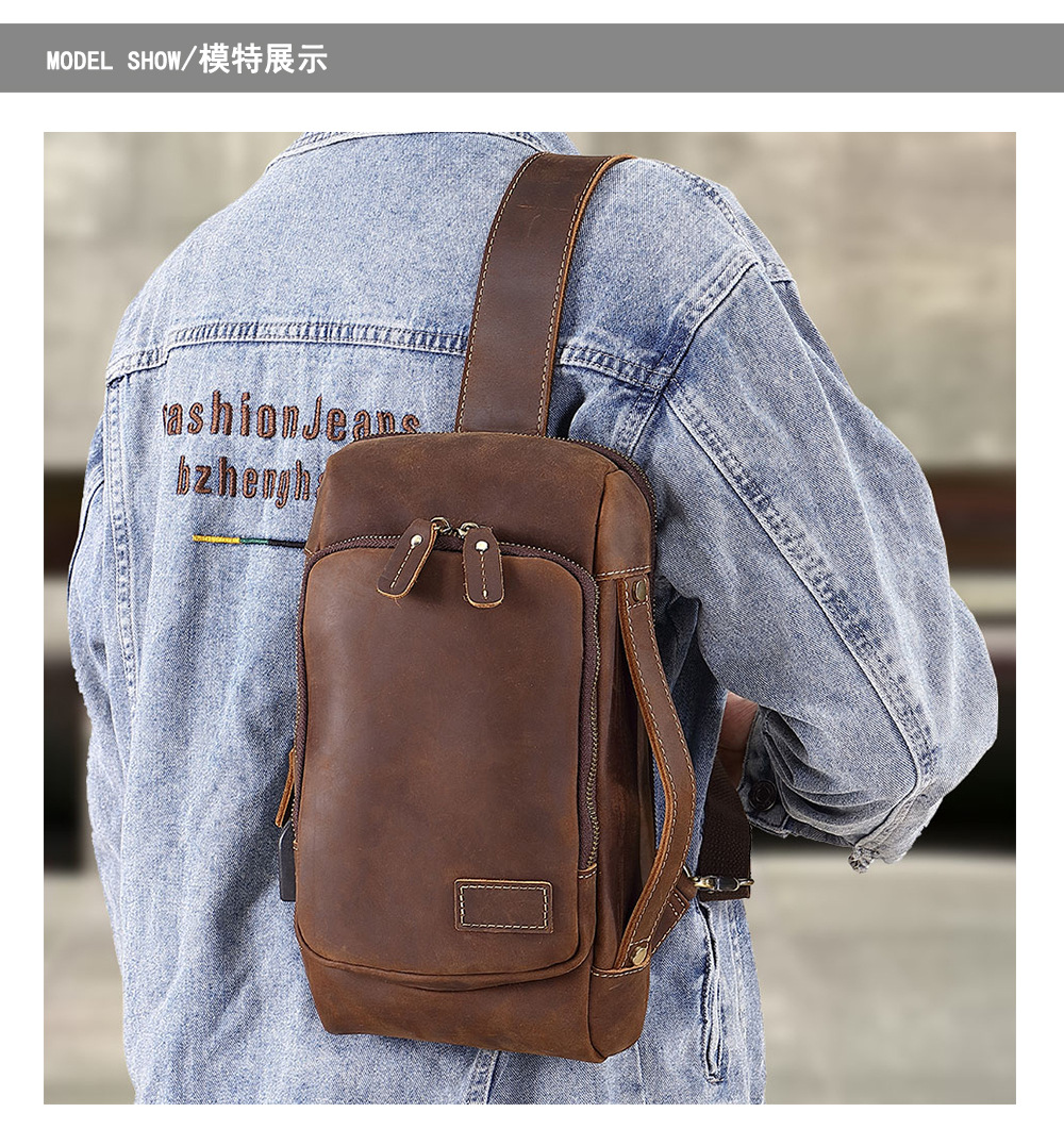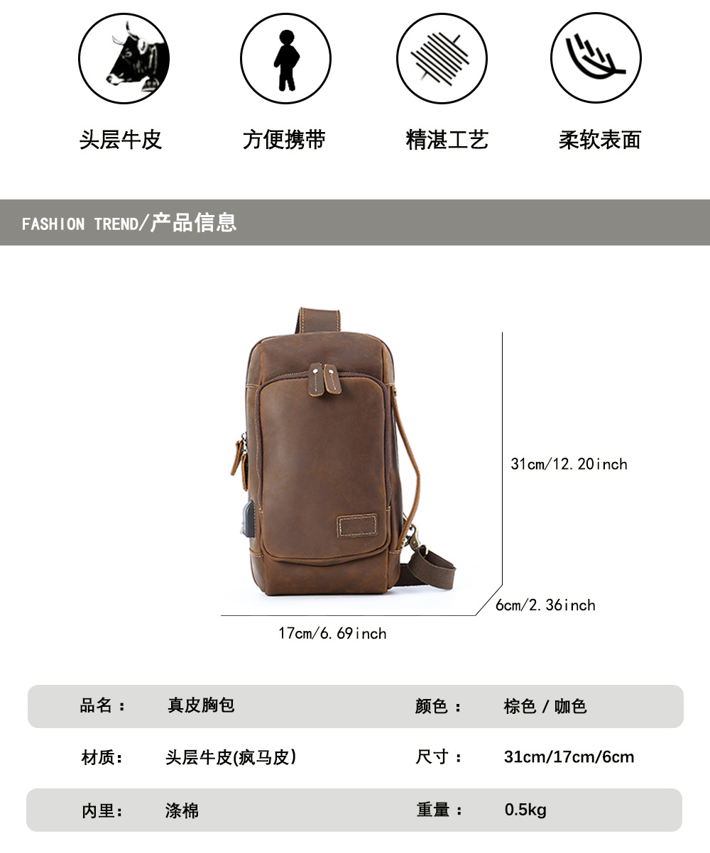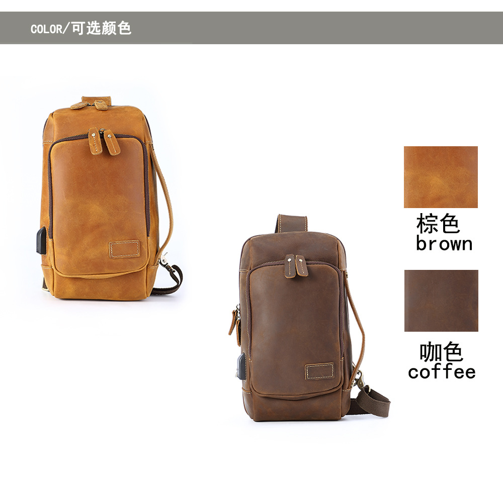 レトロな男性の胸のカバンの本革の胸のショルダーバッグの頭の層の牛革の斜め掛けの男性のカバンの胸の前のリュックサックの越境する新型のカジュアルなカバン