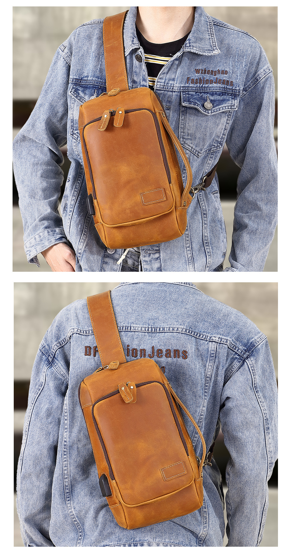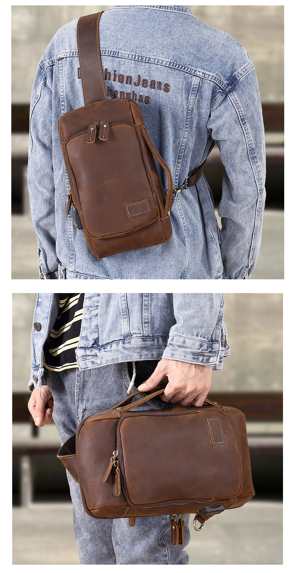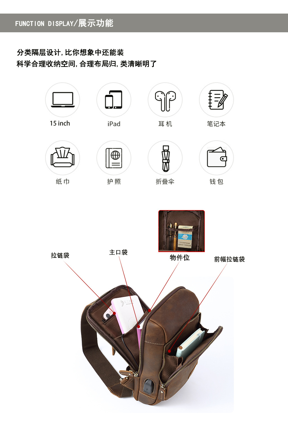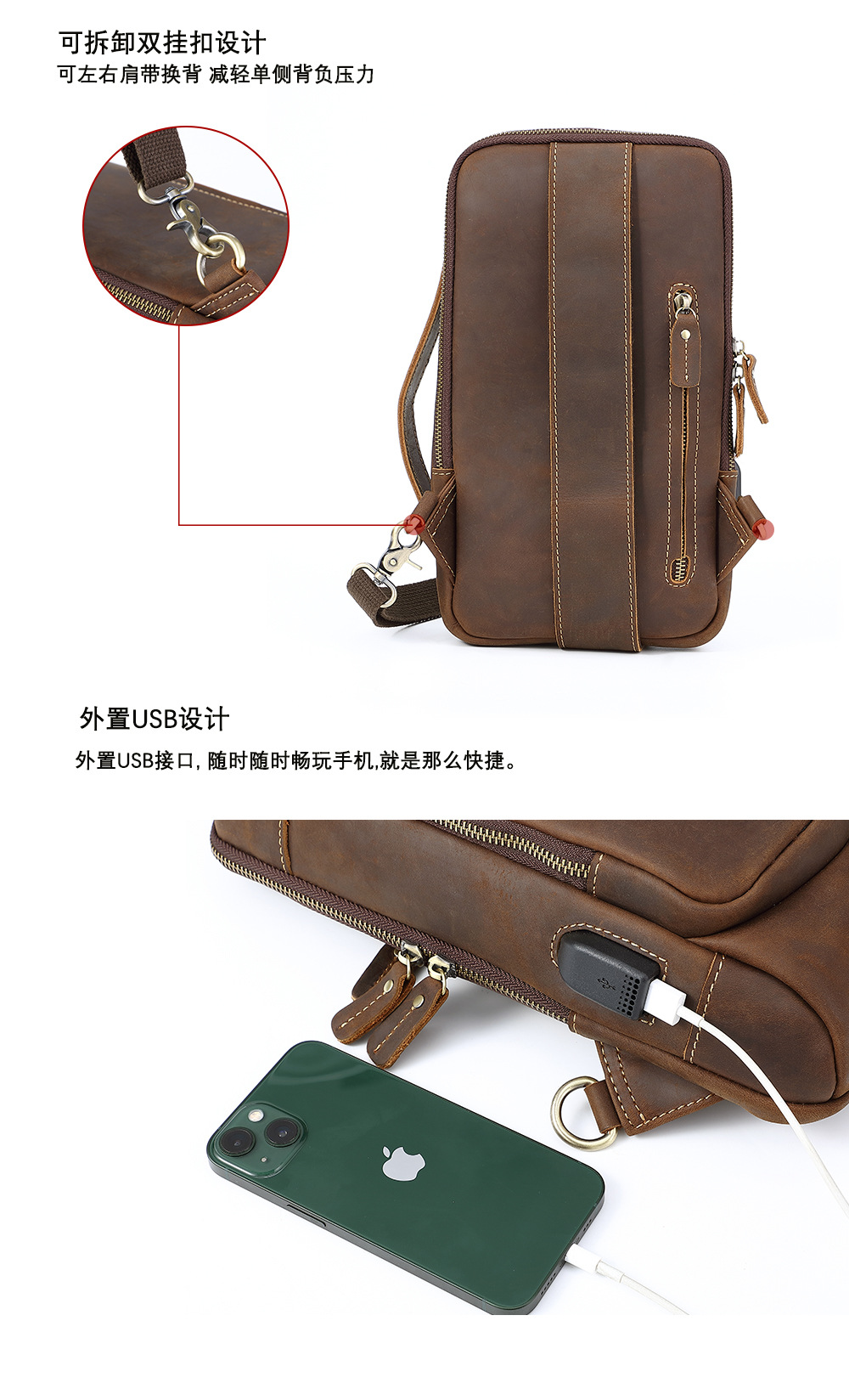 レトロな男性の胸のカバンの本革の胸のショルダーバッグの頭の層の牛革の斜め掛けの男性のカバンの胸の前のリュックサックの越境する新型のカジュアルなカバン