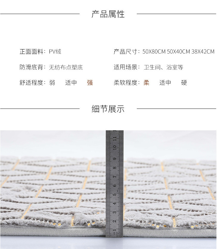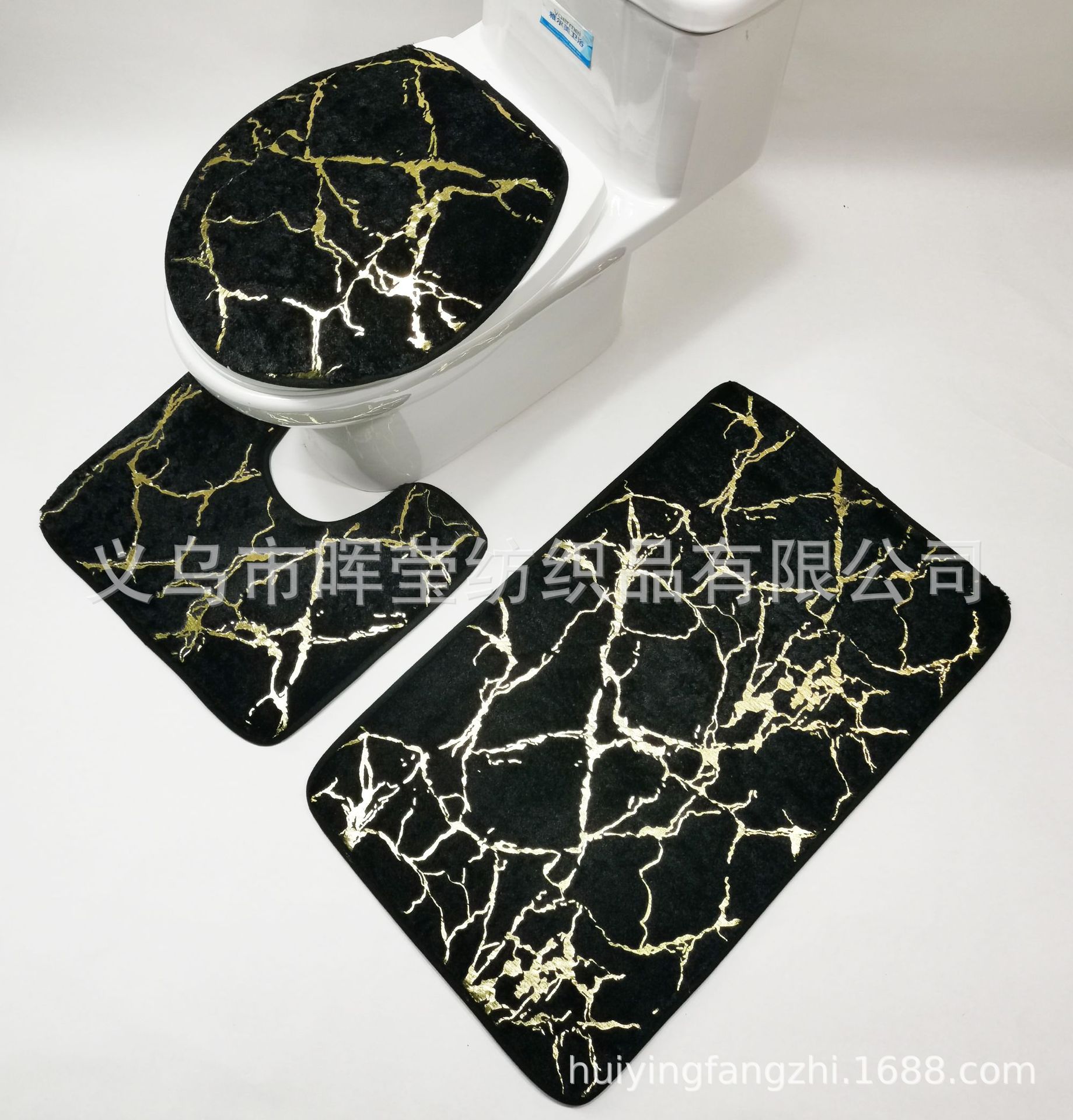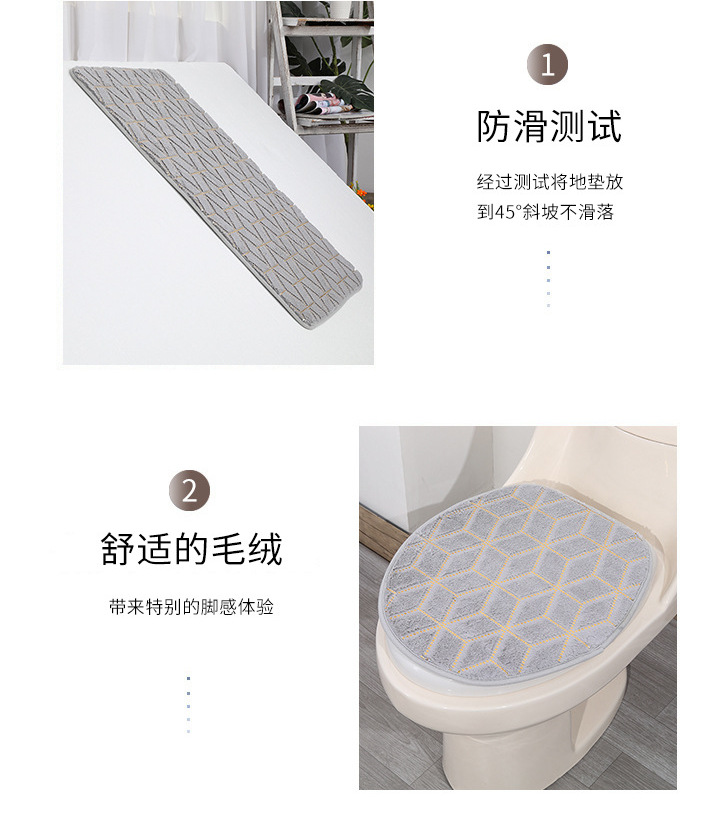 跨境浴室防滑地垫马桶垫三件套烫金PV绒地毯套装长毛地垫加厚吸水