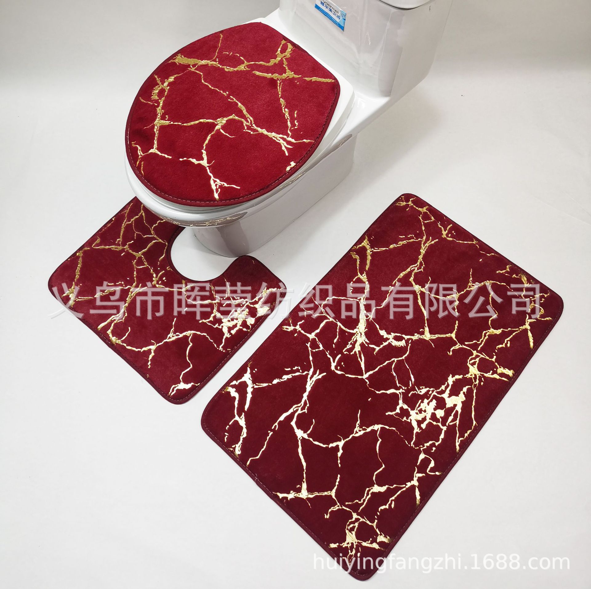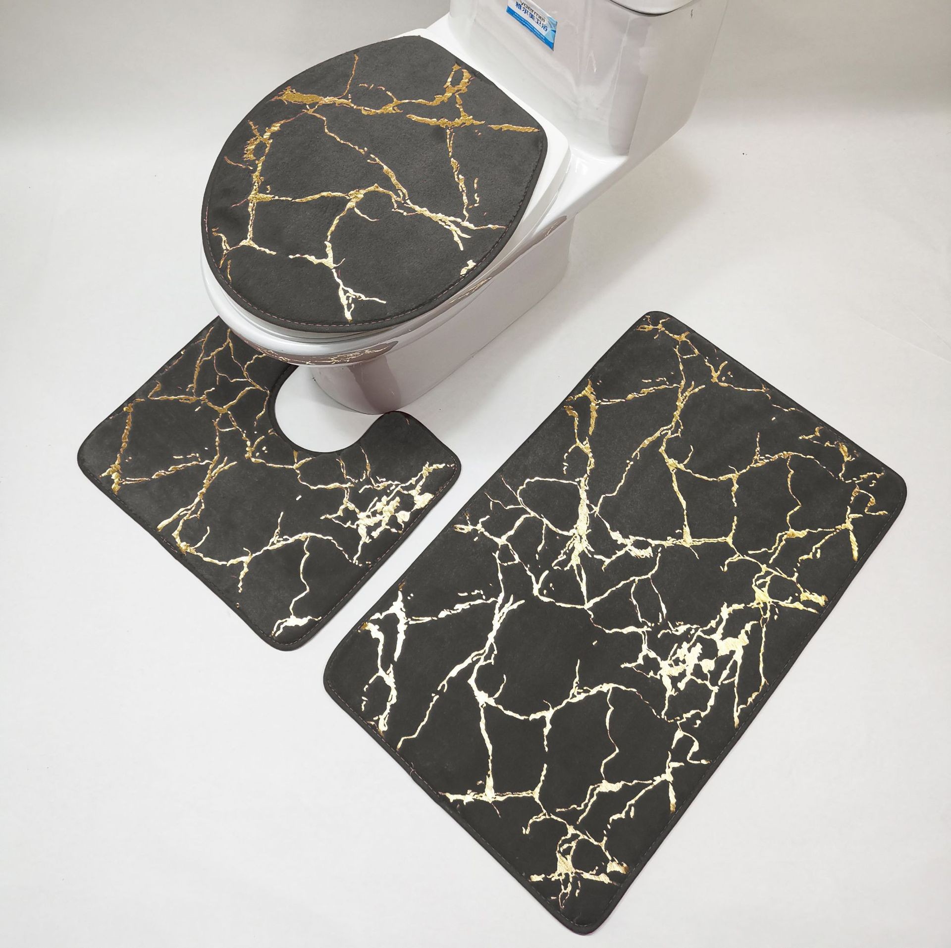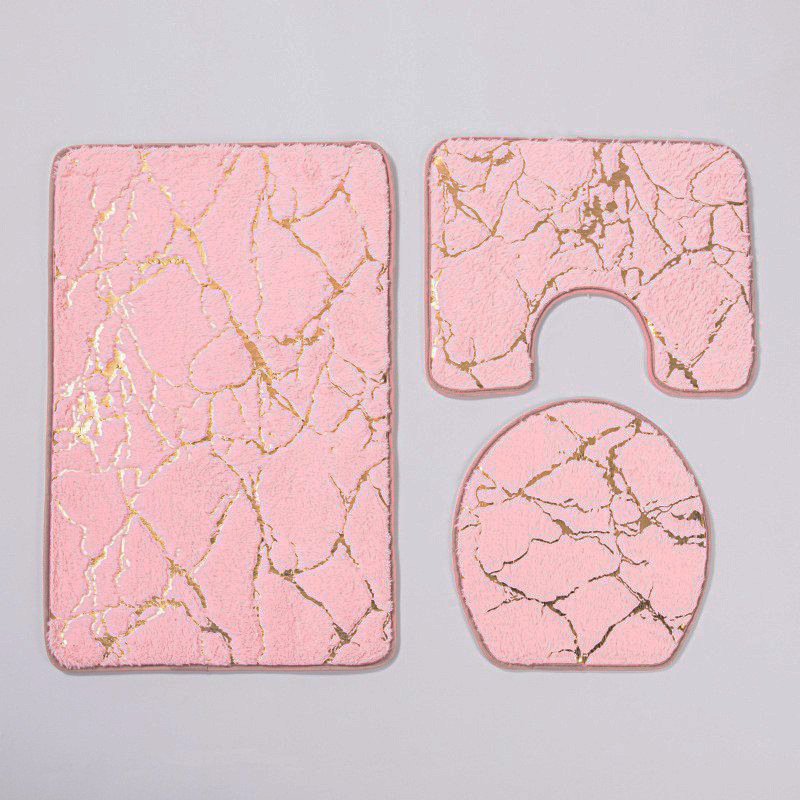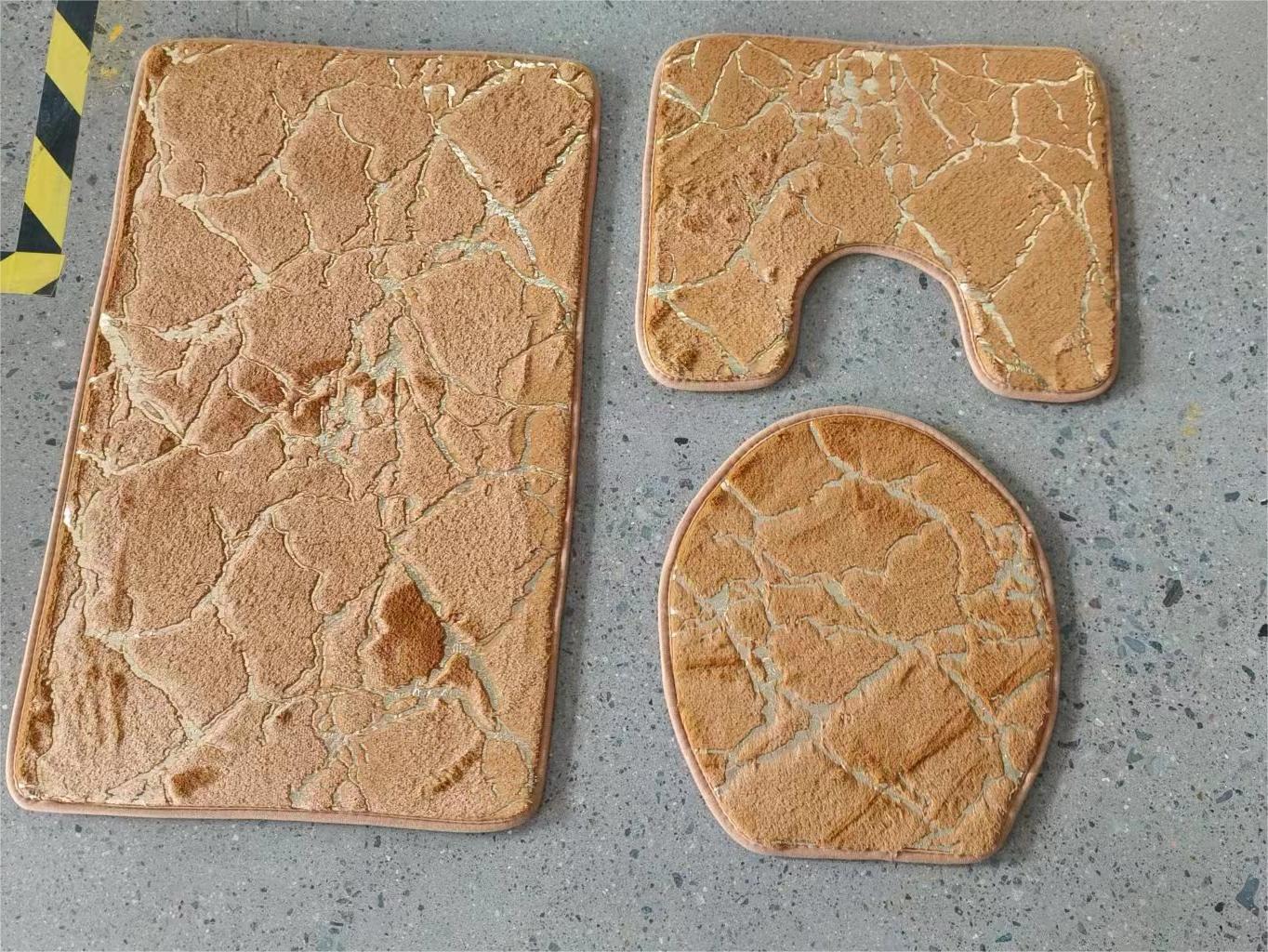 家庭用浴室滑り止めフロアマット、トイレマット、3点セット、金箔押しPVベルベットカーペットセット、ホテル用長毛厚手カーペット