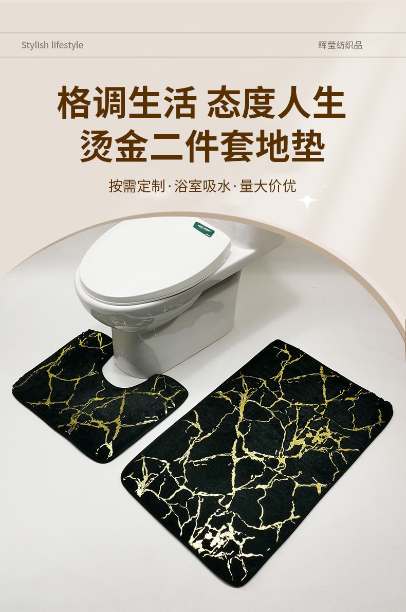 国境を越えた浴室の滑り止めマットトイレマット箔押し2点セットpv絨毯セット長毛床マット