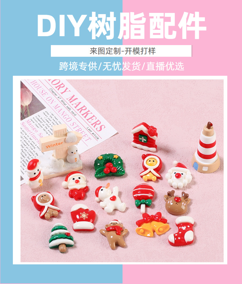 ミニクリスマス15種類の子供趣味手作りdiyクリームゴム携帯ケース髪飾りヘアアクセサリー樹脂部品卸売り