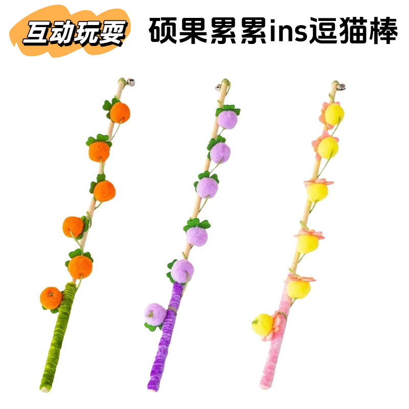 厂家批发硕果累累彩球链条柿子葡萄逗猫棒自嗨解闷宠物小猫咪玩具