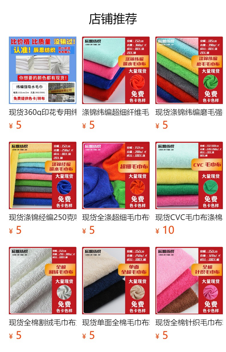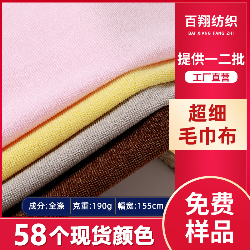 现货批发超细纤维毛巾料全涤纬编单面毛巾布吸水布料浴袍浴巾面料