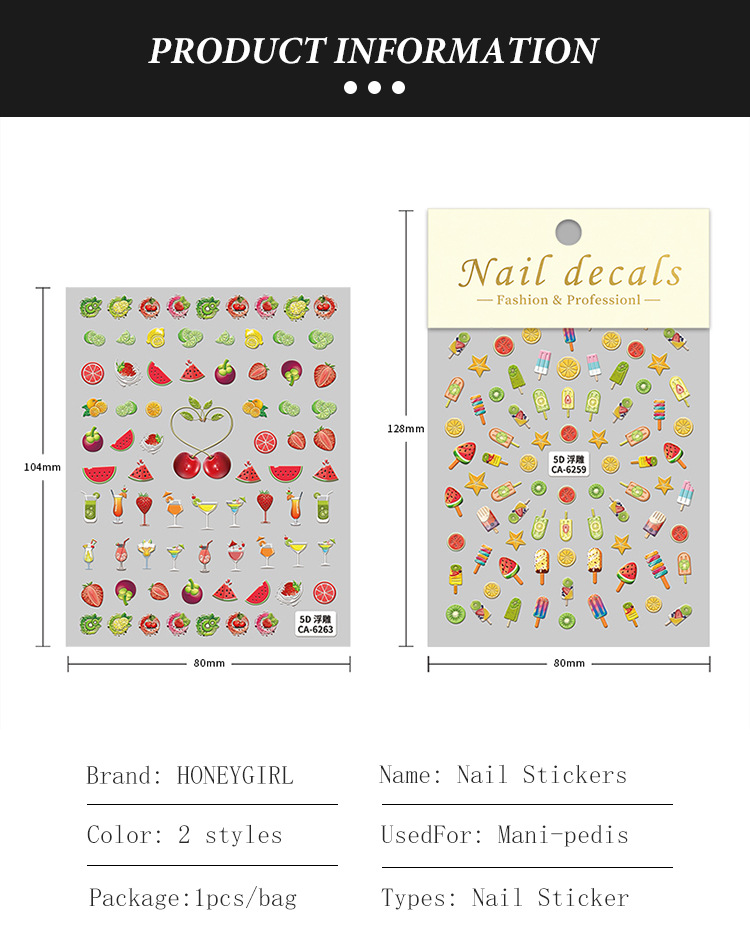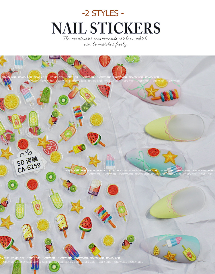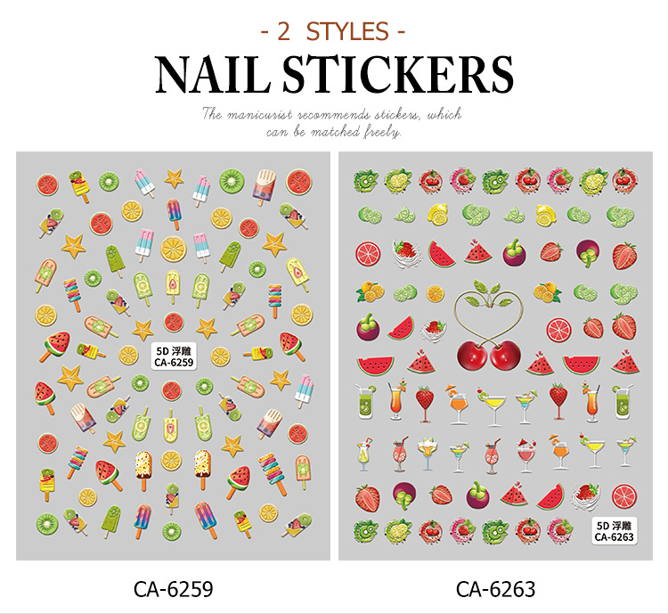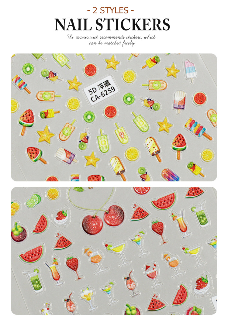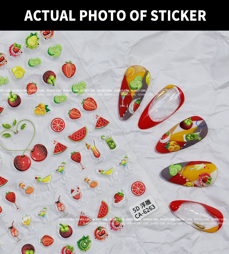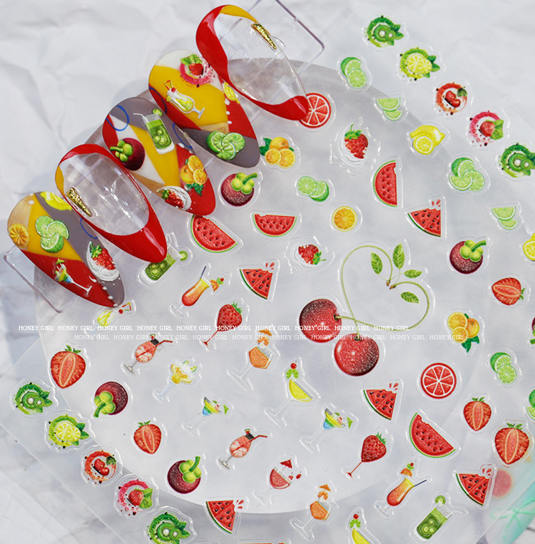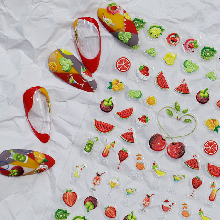 5dレリーフ立体果物スイカさくらんぼいちごレモンシールもちさくらんぼ爪装飾小模様シール