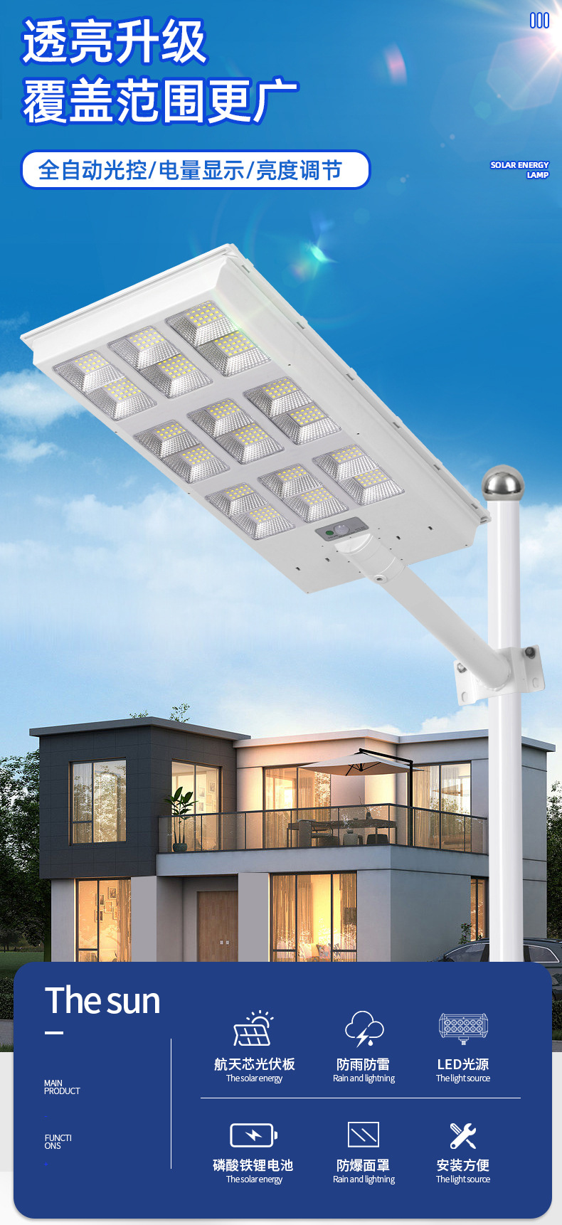 太陽エネルギー屋外庭灯一体誘導灯農村室内外照明超亮大電力led道路灯