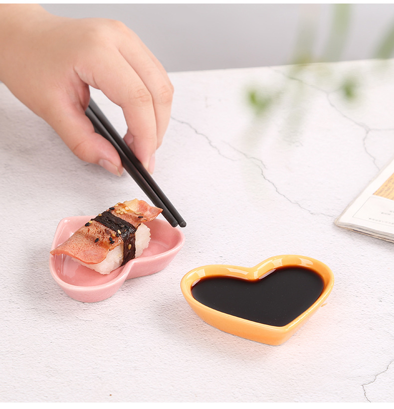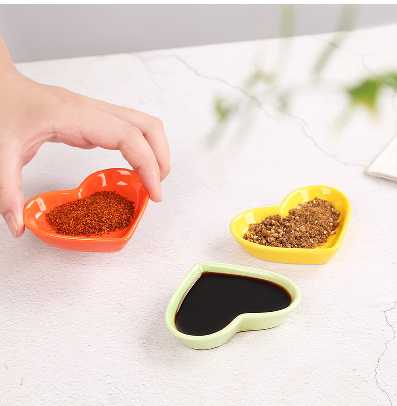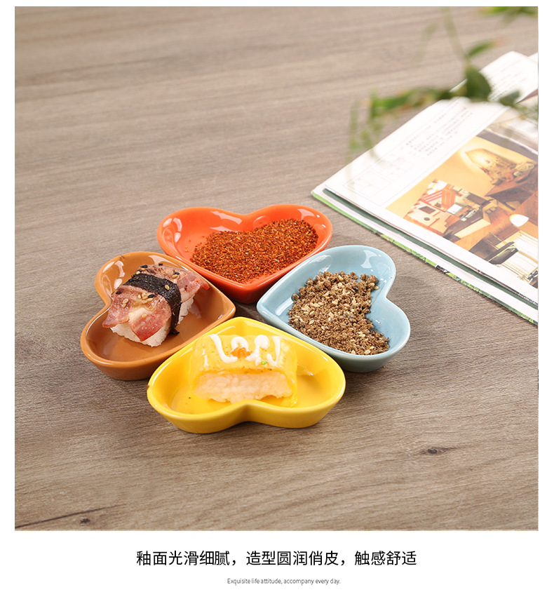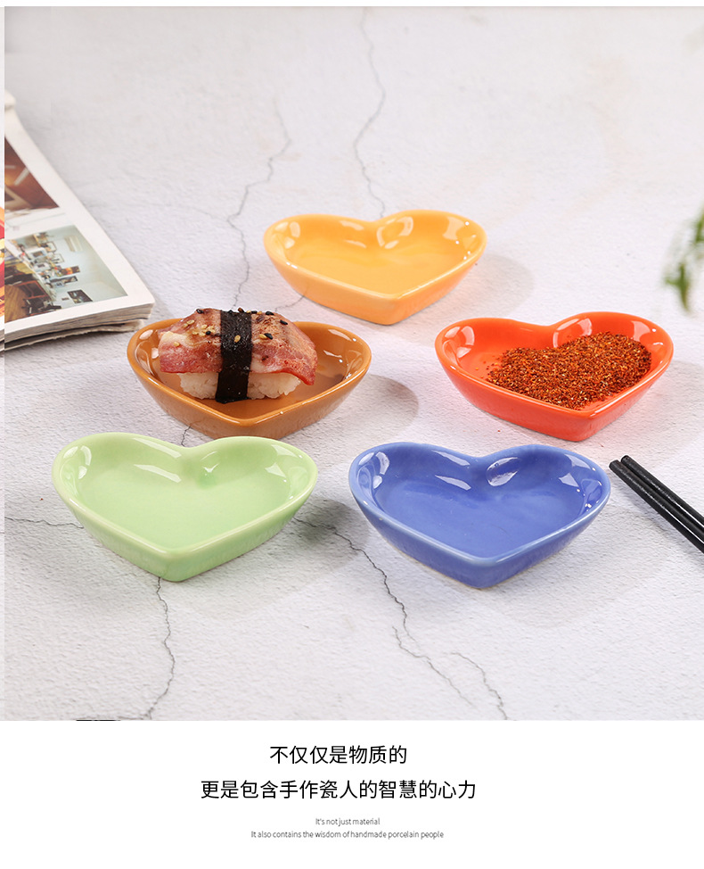 日本式ハート型の酢皿の陶磁器の小皿の台所は多く調味料の小皿の小皿の家庭用調味料の酢の食器を使います。