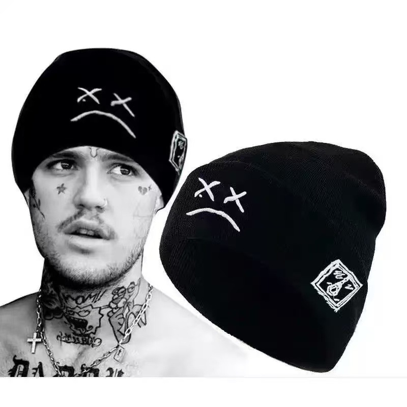 外国貿易の人気モデル冬Lil Peep刺繍ニット帽悲しい顔の表情がおかしい