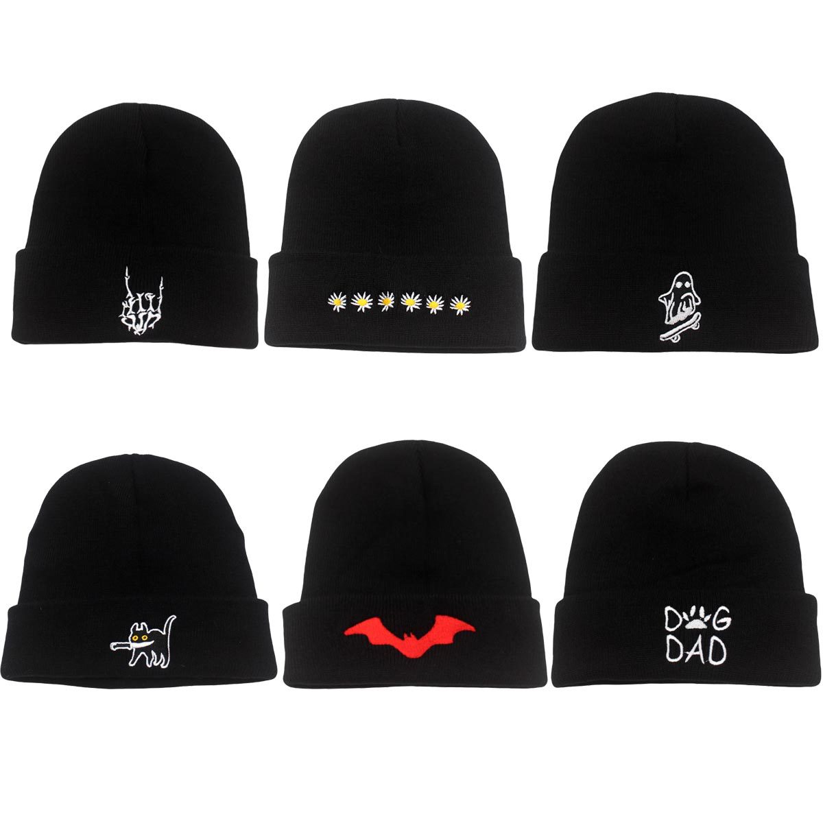 ハロウィーンホラー頭蓋シリーズ刺繍ニット帽クロスボーダー人気ロゴ保温防風毛糸帽