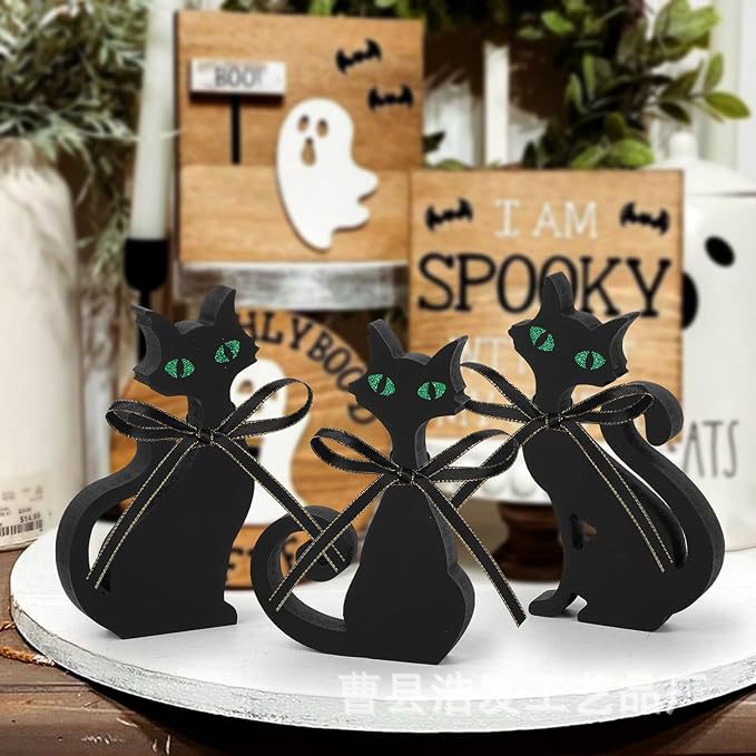 クロスボーダーハロウィン黒猫装飾装飾品ディナーパーティー面白い工芸品装飾品ゴースト木製サイントレイ