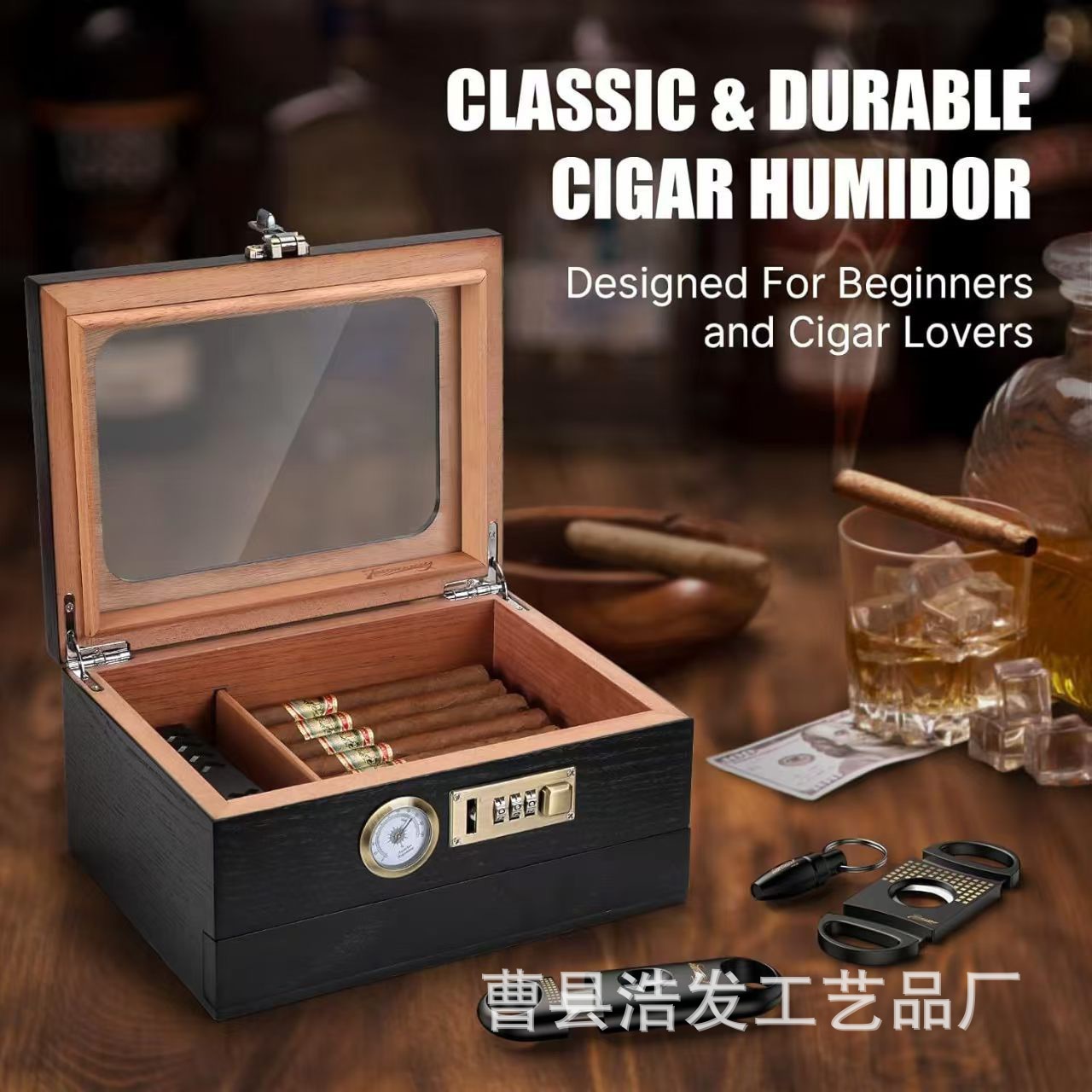 木製葉巻ケースフリップトップ大容量葉巻保湿ボックス家庭用密封タバコセットタバコ収納ボックス葉巻ケース