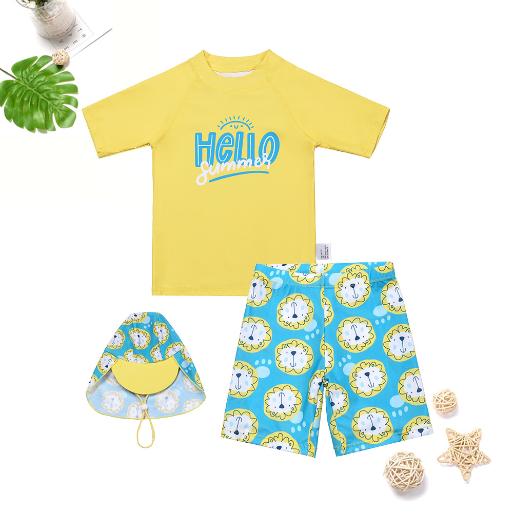 子供水着男の子半袖新品ライオンヘッド中大きい子供日焼け止め水着ファッション男の子スプリット水着セット