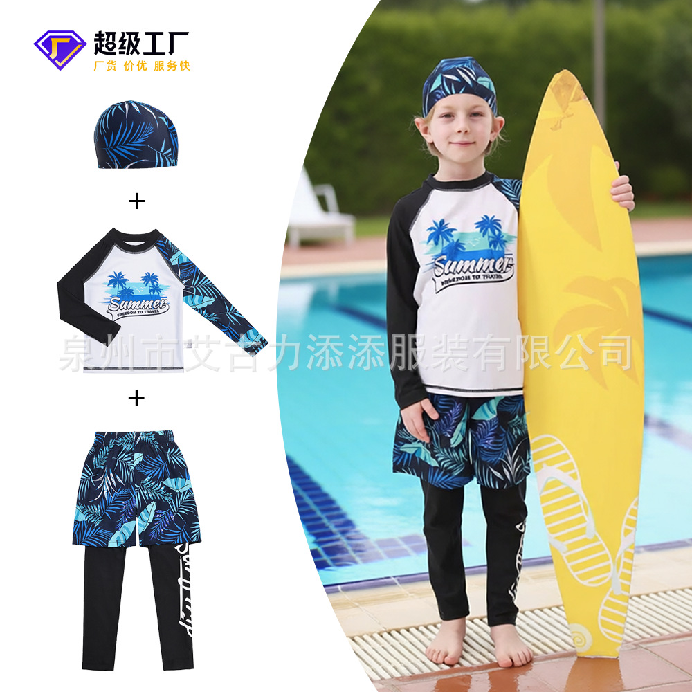 子供水着男の子水着長袖温泉日焼け止め速乾小中大童男の子分体水着セット卸売り