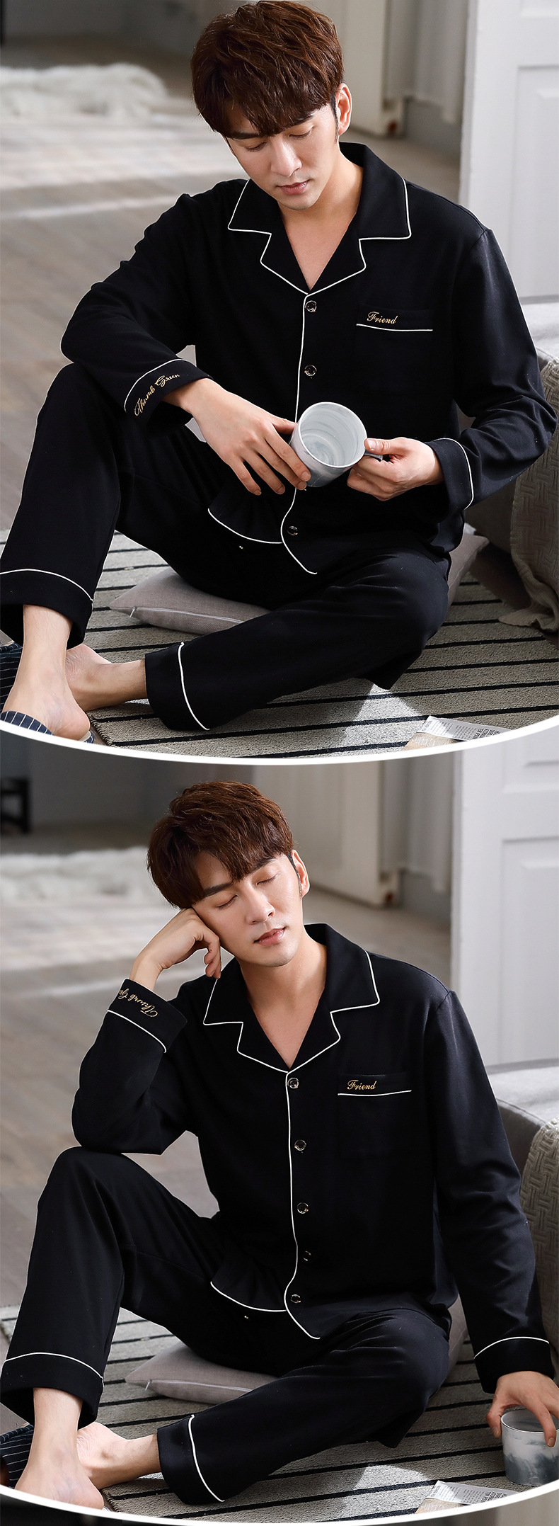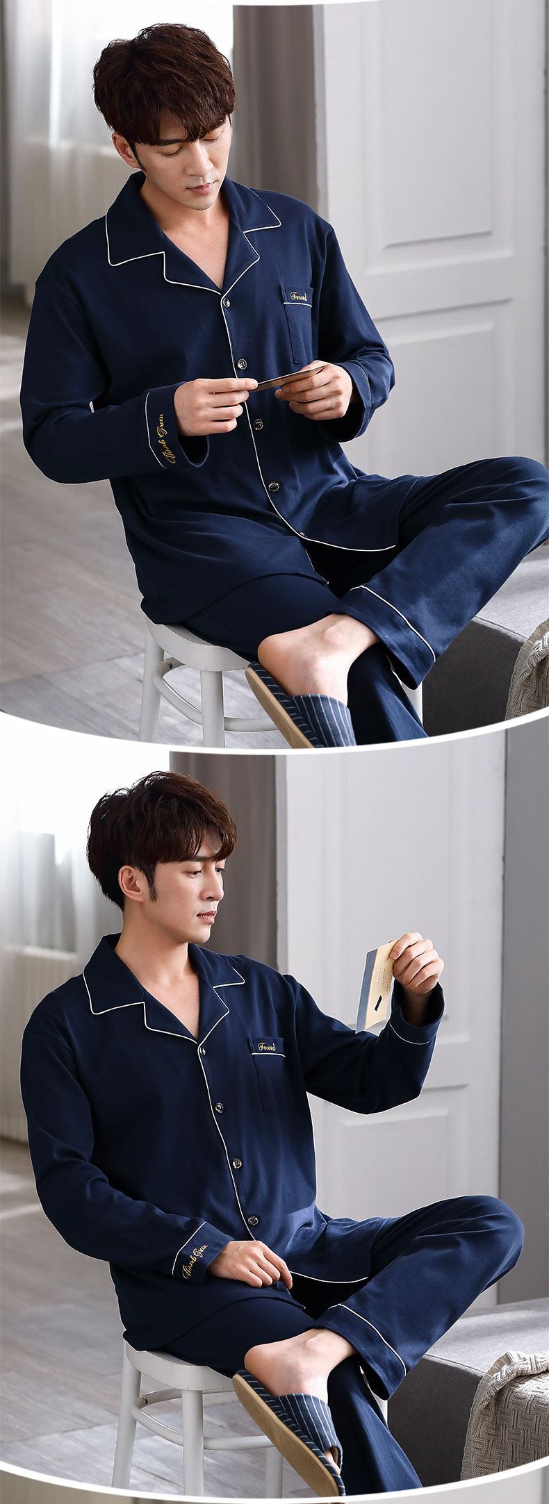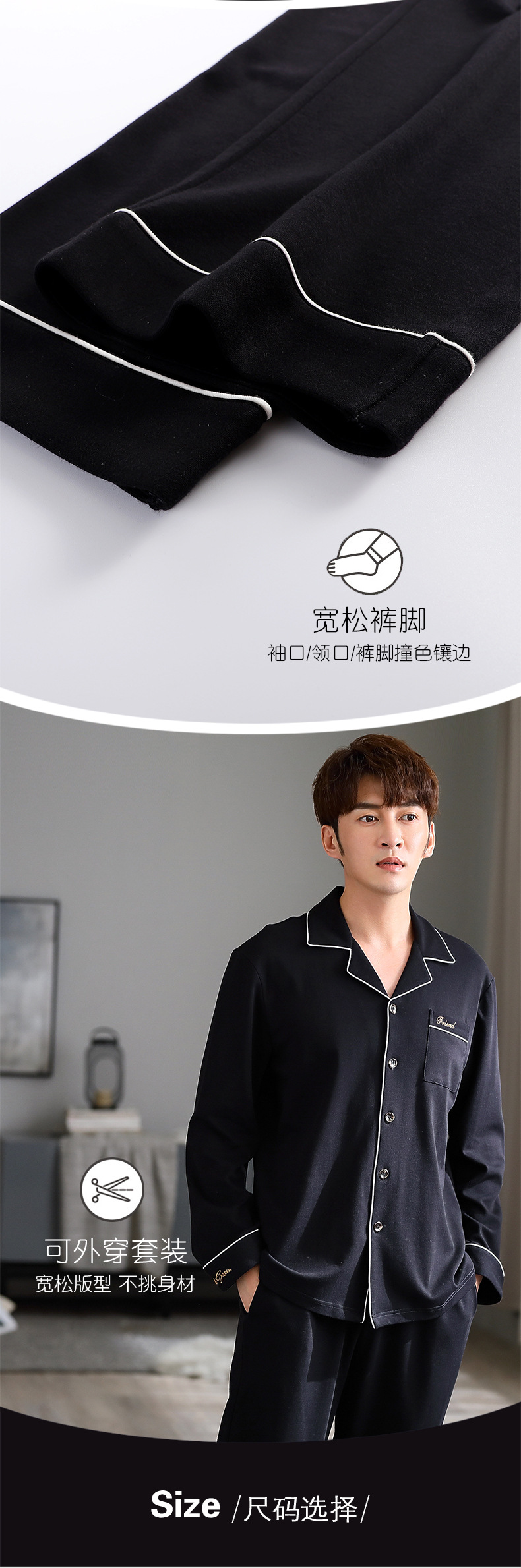 抗菌男士睡衣春秋季纯棉长袖套装休闲大码240斤家居服新款可外穿