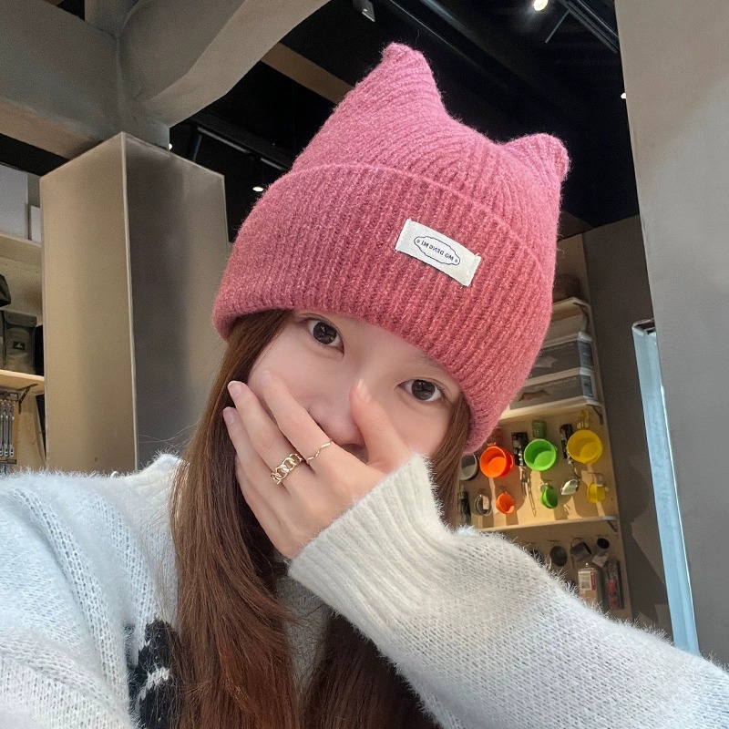 日系かわいい猫耳毛糸帽子供冬2023新型厚手保温防寒耳ニット帽