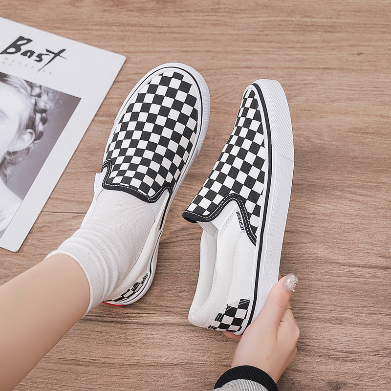 男女黑白格子帆布鞋2026春季新款学生运动休闲鞋韩版棋盘情侣板鞋