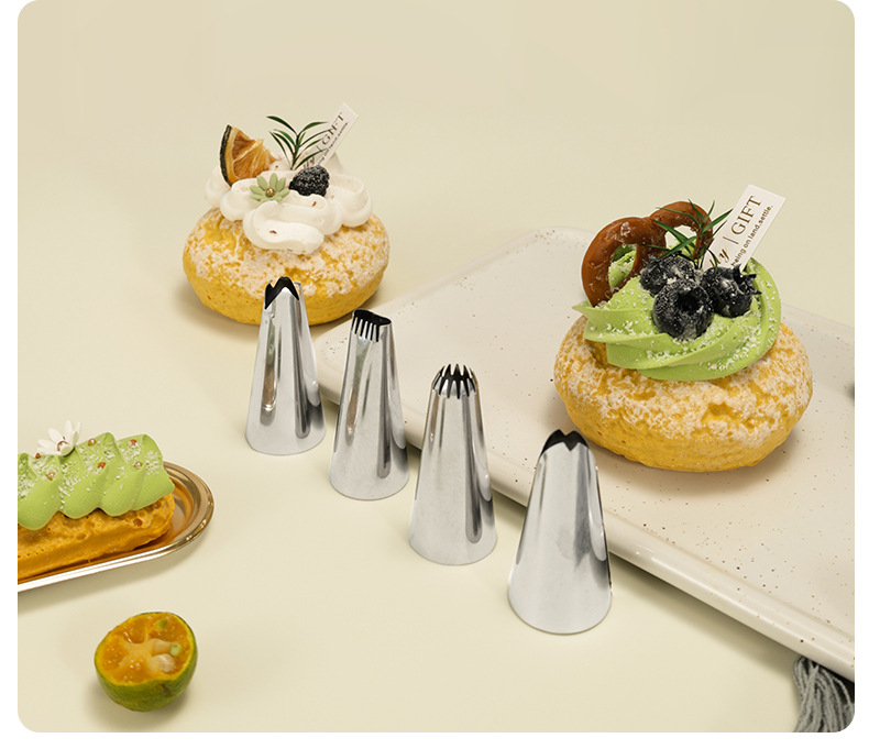 304ステンレスの中号の表装の花の口の6歯の8歯のケーキのクリームは花の口を押してdiyのケーキの装飾のツールを焼きます。