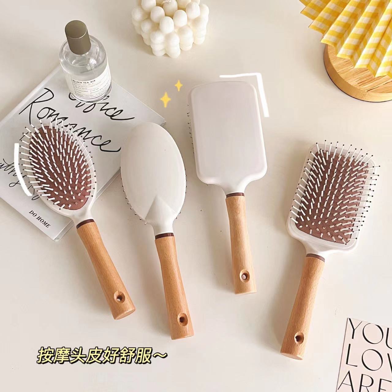 韓国ins風シンプルエアバッグ櫛木柄静電気防止カールマッサージ櫛高颜値櫛クロスボーダー
