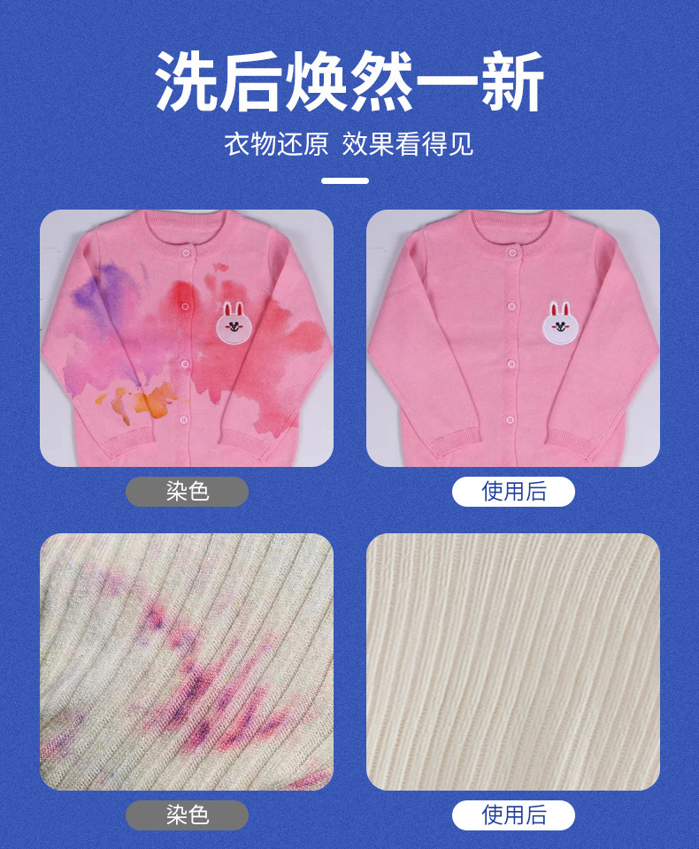 服の染色修復還元剤の布地除去剤の色に白い色の黒い服をかけて黄増白の神器を取り除きます。
