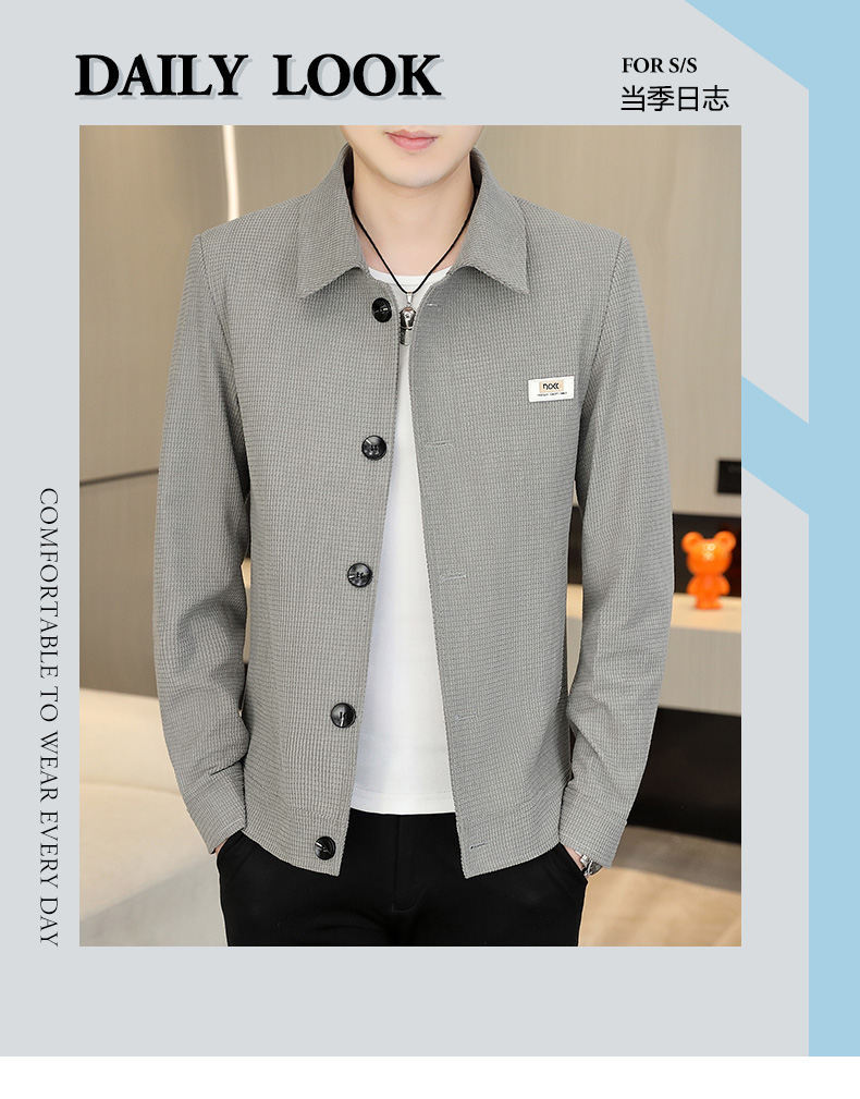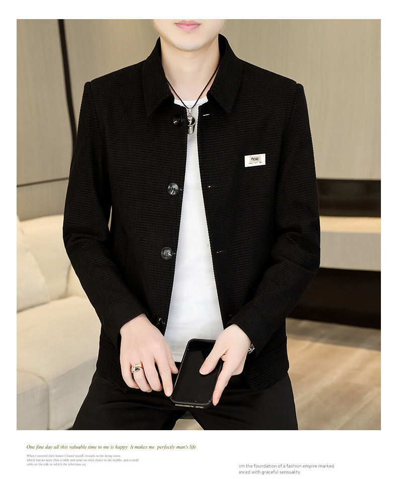 2024中年男性ジャケットゆるいカジュアル春秋服中高年お父さんコート単列ボタンナス0308