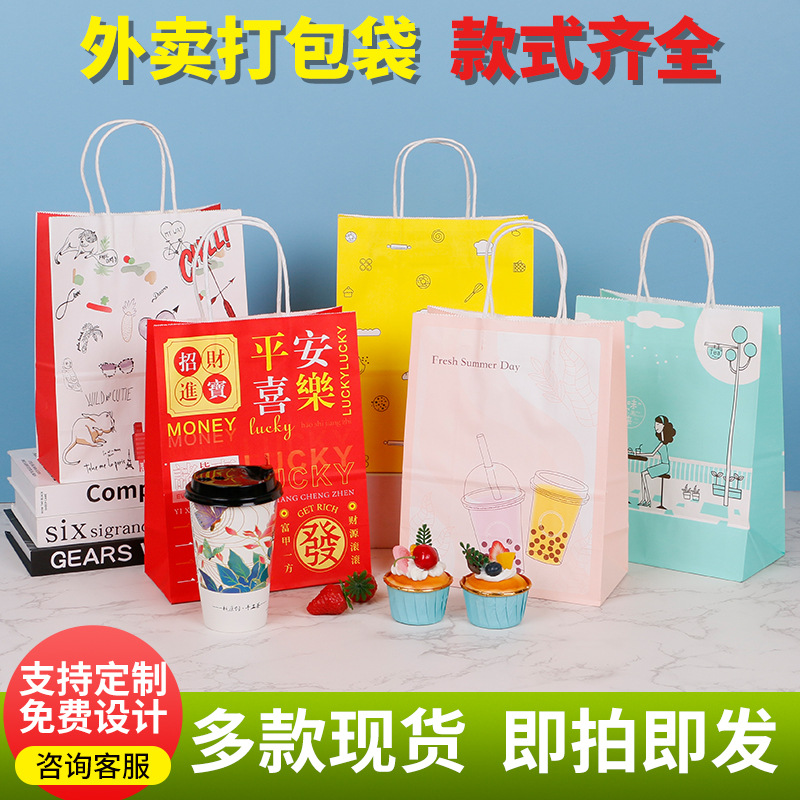 牛革紙袋テイクアウト包装袋赤色中国風ハンドバッグベーキングミルクティー包装袋卸売ロゴ印刷