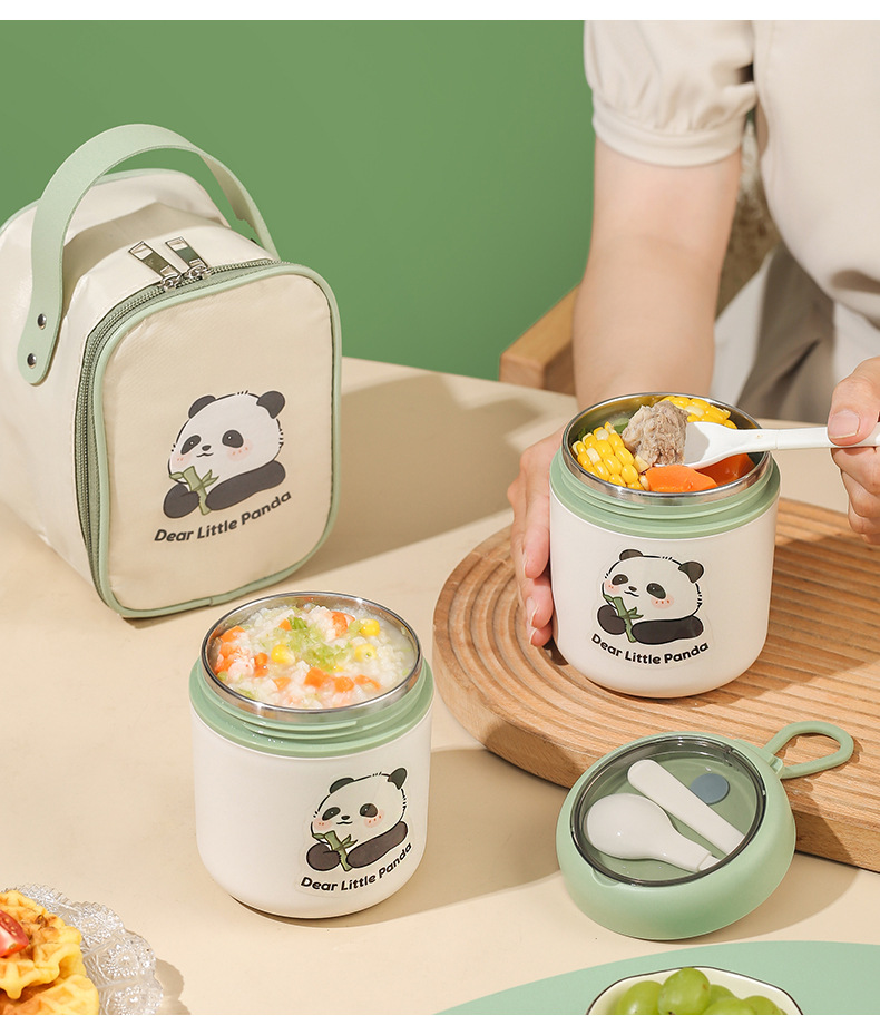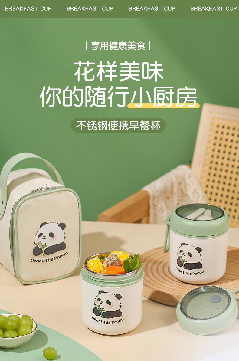カラー パンダの朝食カップ,パンダの朝食カップ+保温バッグ,クマの朝食カップ,クマの朝食カップ+保温バッグ,女の子の朝食カップ,女の子用朝食カップ+保温バッグ,パンダ柄 保温ランチバッグ (カップなし)