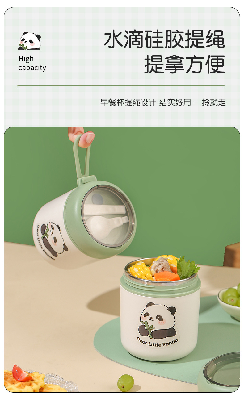 304不锈钢早餐杯汤杯带盖勺便携燕麦杯密封牛奶杯豆浆杯汤罐