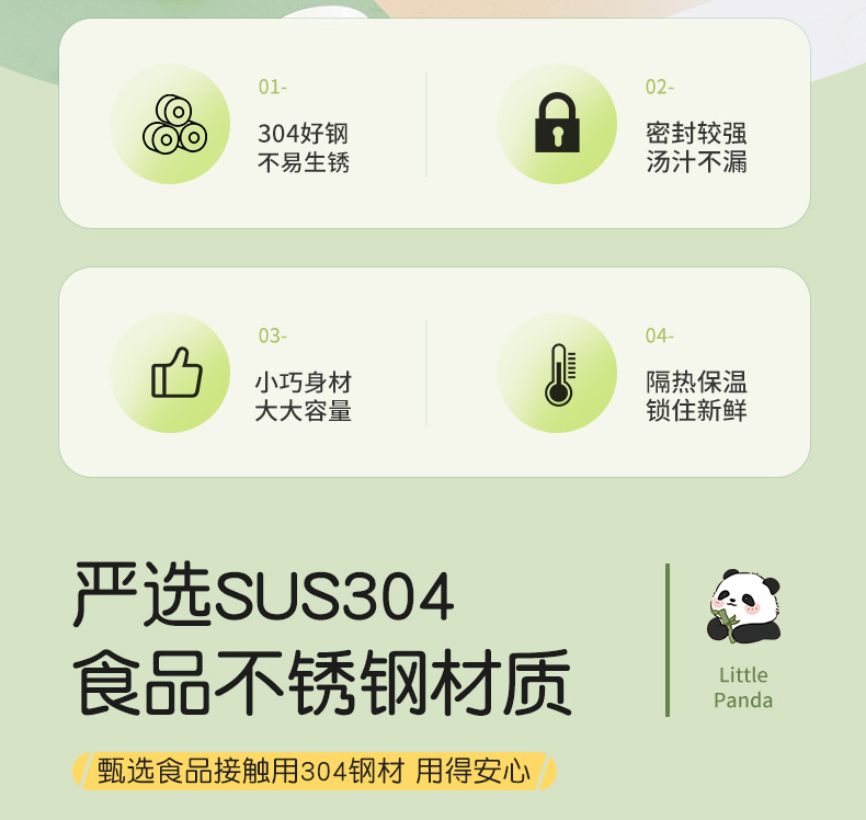 304ステンレス朝食粥カップオート麦豆乳牛乳スープ缶ポット携帯外蓋付きスプーン水カップ保温カップ
