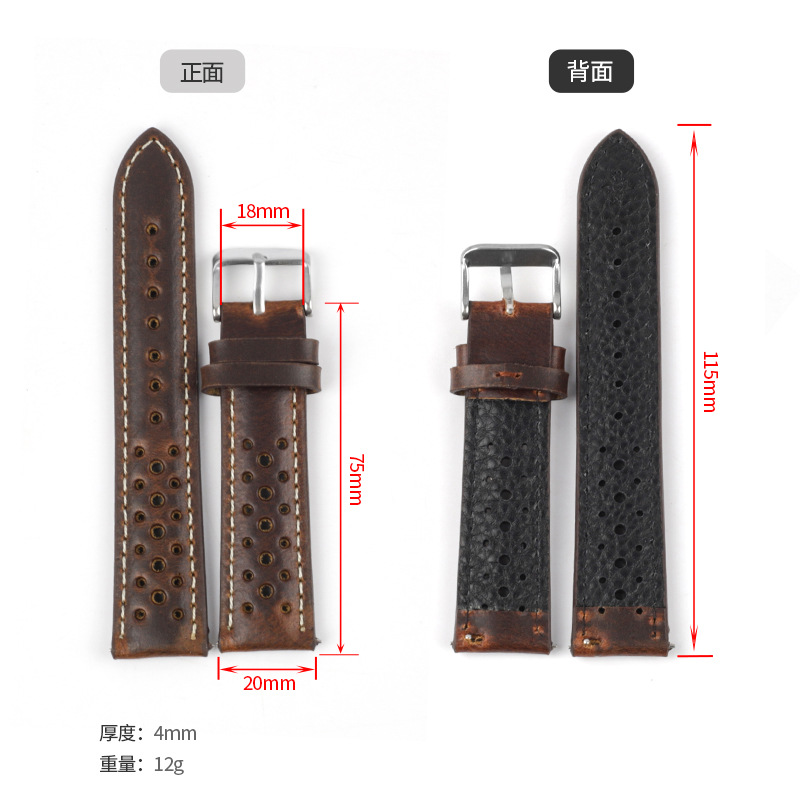 新しいスポットライチパターンレトロ第一層本革時計ストラップ手縫いリベットモデル時計リストバンドアクセサリーユニバーサル
