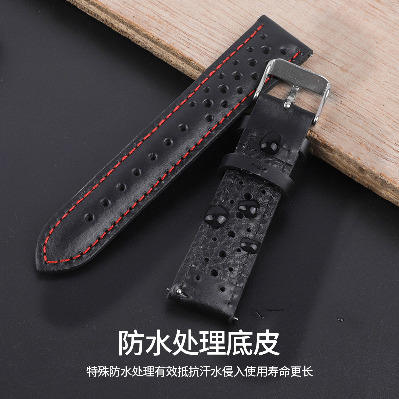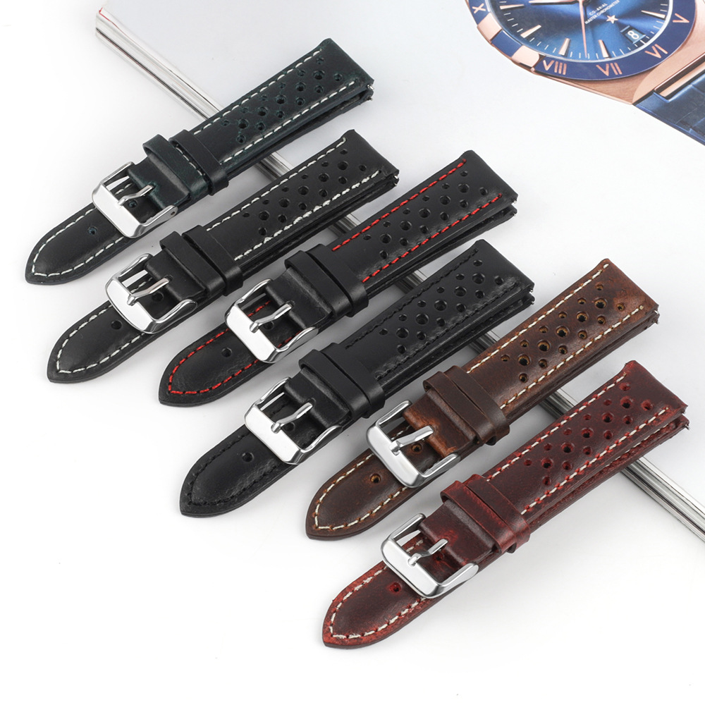 ポーラス通気性オイルワックス本革バンドブラックブラウン赤18-24mm