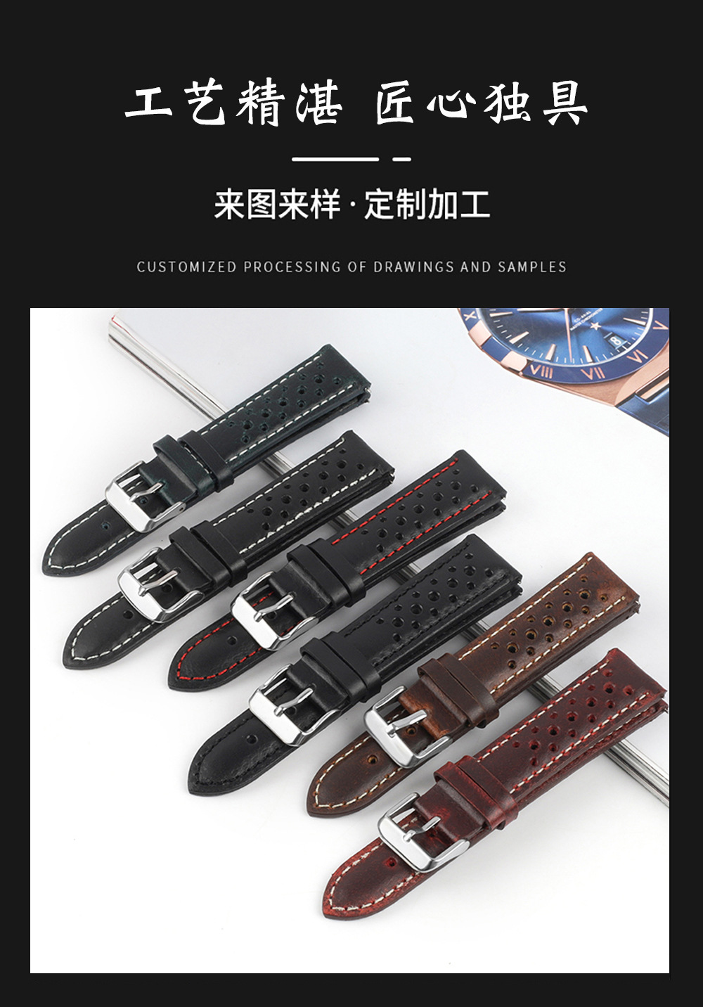 よく売れている頭皮の汗防止腕時計バンドの部品は純粋な手作業で色を拭きます。