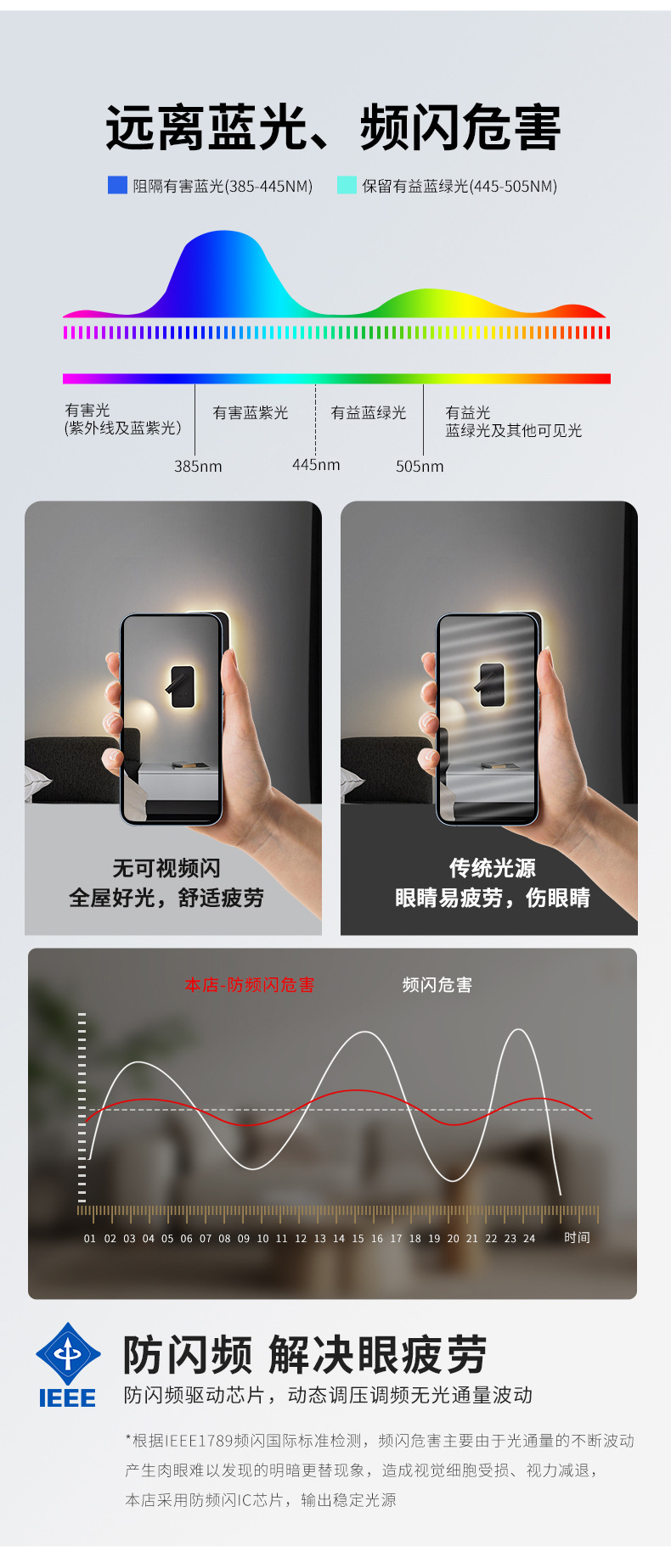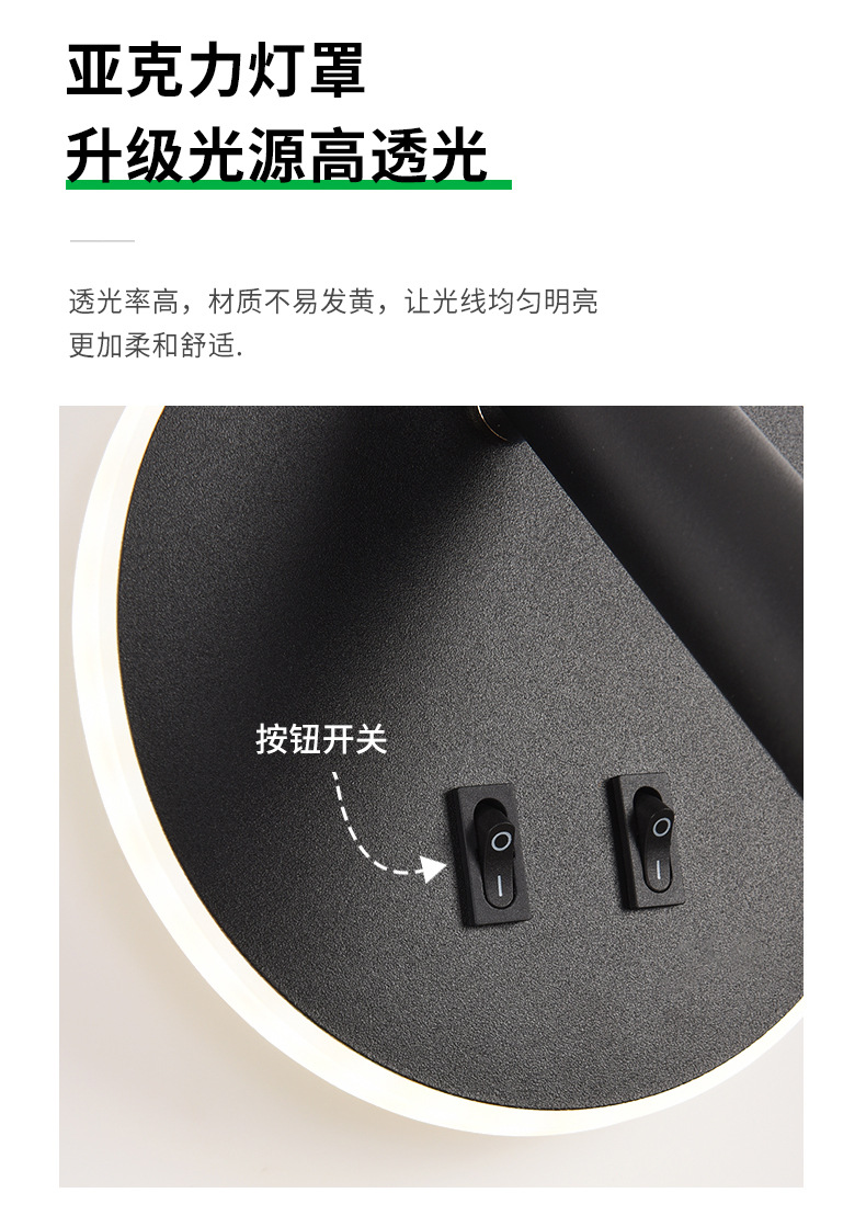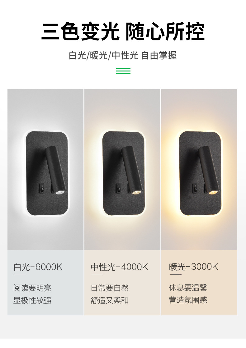 フルスペクトル寝室ウォールランプベットランプ雰囲気感階段书斎壁部屋通路ランプ回転可能ウォールランプ