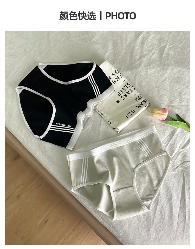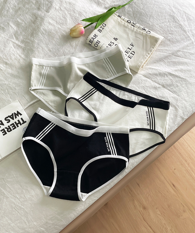 スポーツ系中腰純綿パンツ女性通気抗菌純綿シンプルなストライプのお尻を包む学生の少女の下着は快適です。