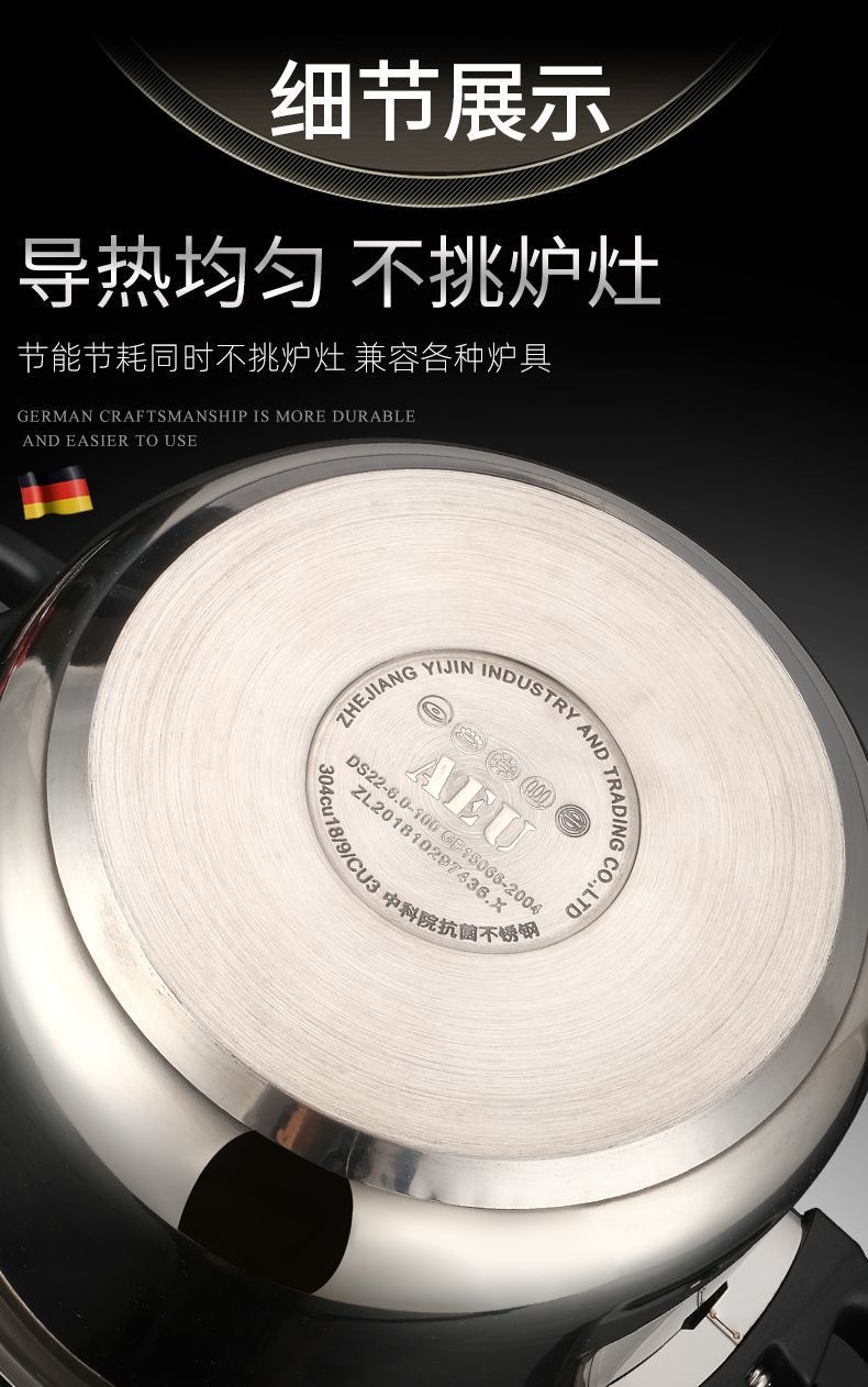 新しい 304 ステンレス鋼圧力鍋家庭用多機能厚みのある防爆大容量ガスストーブ電磁調理器に適しています